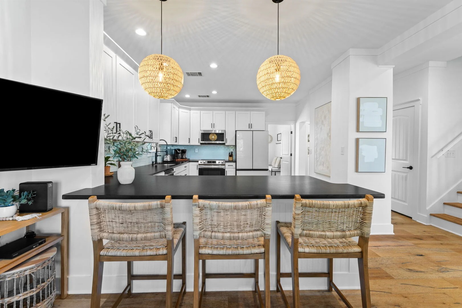 The Sands backs up to forest, which is very private, and is only 6 homes to the Gulf of Mexico, with direct County/Public access at the end of the street The 30A Bike Path is only 6 homes away, Bike or walk to Alys Beach, Rosemary Beach and more. Driveway can accommodate up to 5 cars, so parking is never an issue. Privacy fences on either side of the house create additional vacation enjoyment. This house is perfect for several families! Close to Alys Beach, Rosemary Beach and the fabulous Emerald Coast and Dune Lakes - all within a short bike ride away. Book your perfect beach vacation today!!...