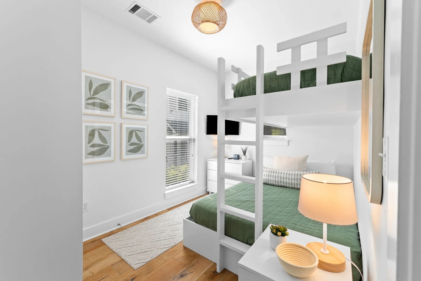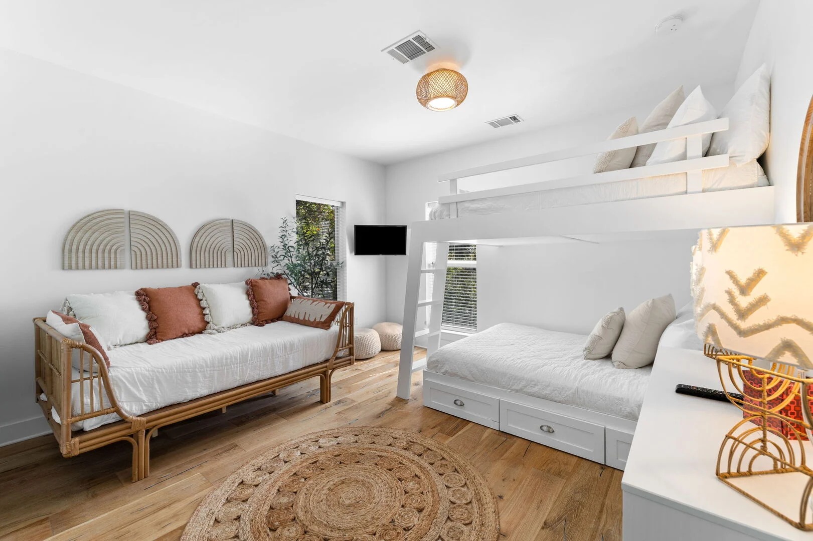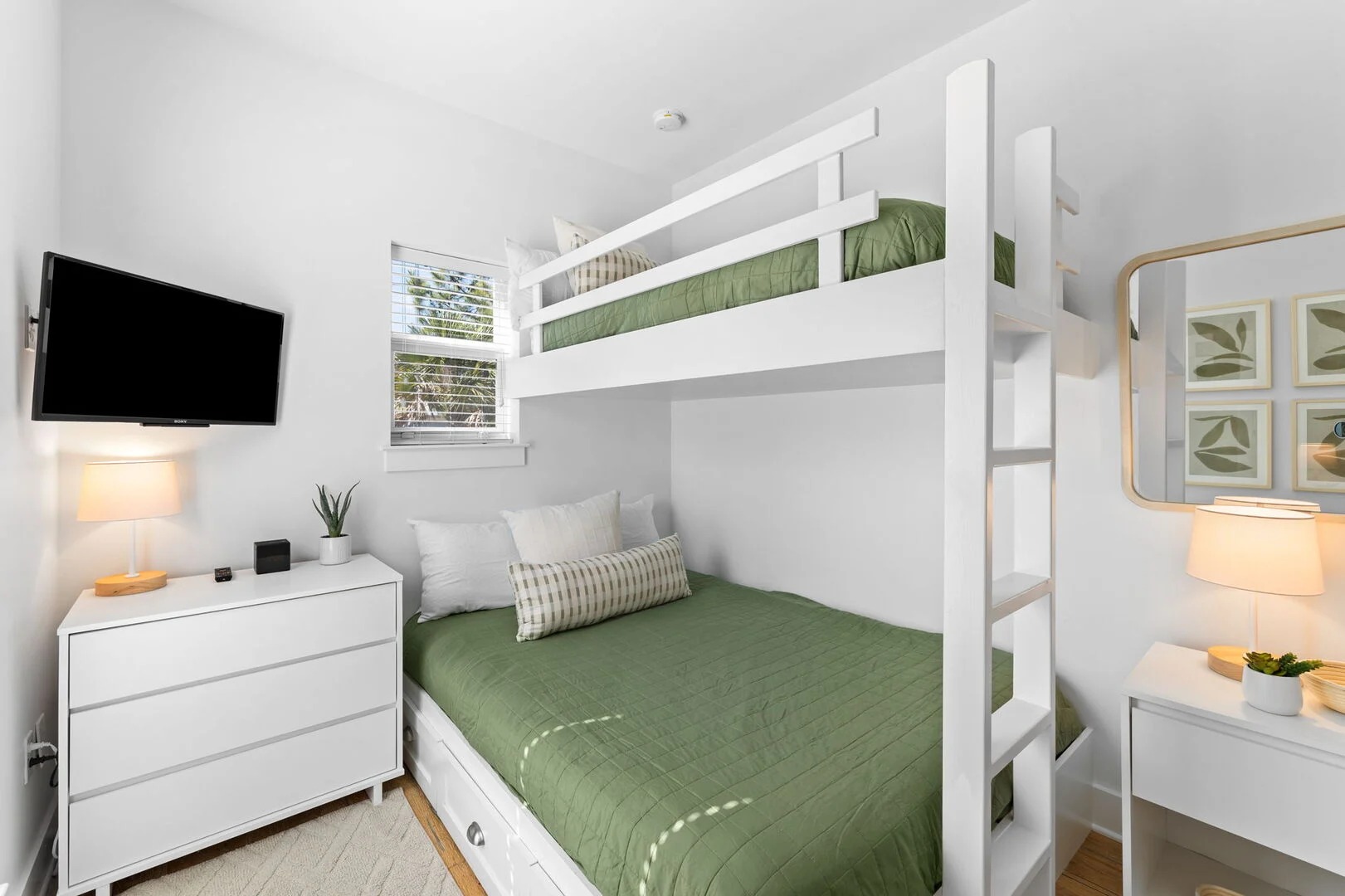 This home has 3 king bedrooms and 2 bunk rooms. Short 5 minute walk to the white sand beach, separate TV area on the third floor ideal for kids, large carriage house with a full kitchen and living room and the completely unique and family fun game room area perfect for hanging out post-beach or pool. The 1st Floor of the carriage house is a game room/pool house, located directly off the swimming pool. Queen sleeper sofa and sofas for lounging. Perfect for the entire family. There is a private deck off of the master bedroom, providing privacy for adults. The 3rd floor has Gulf Views.
