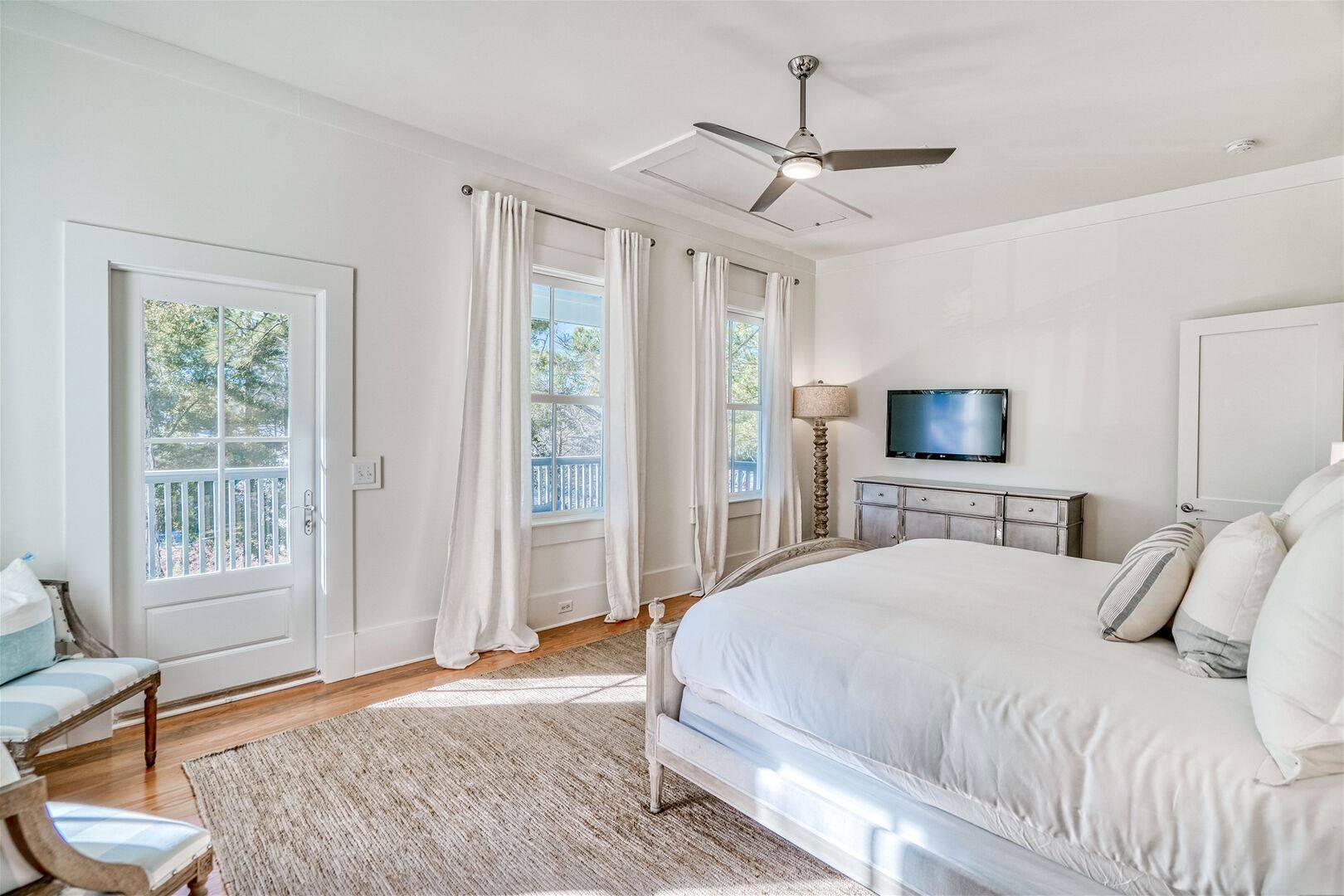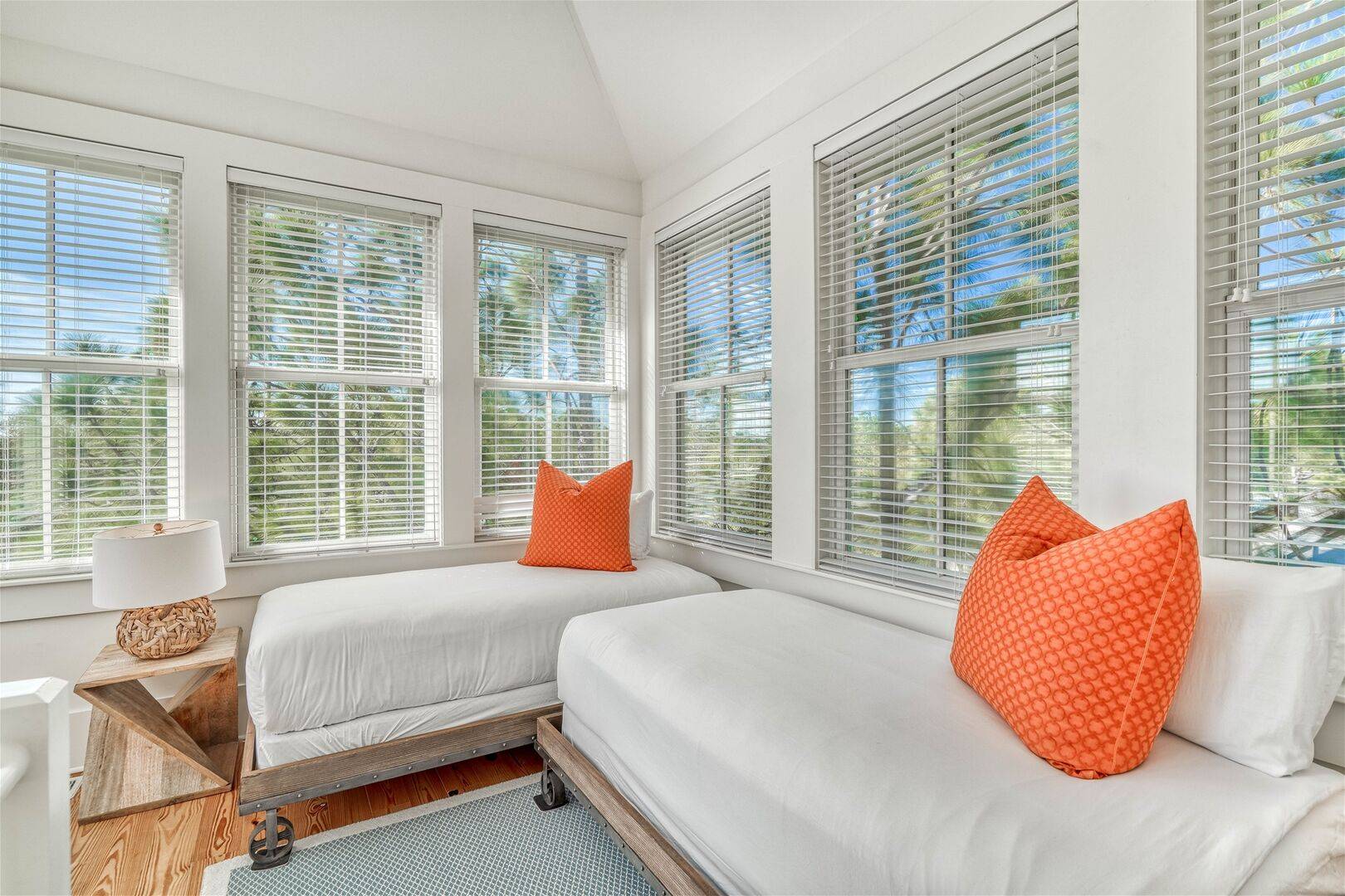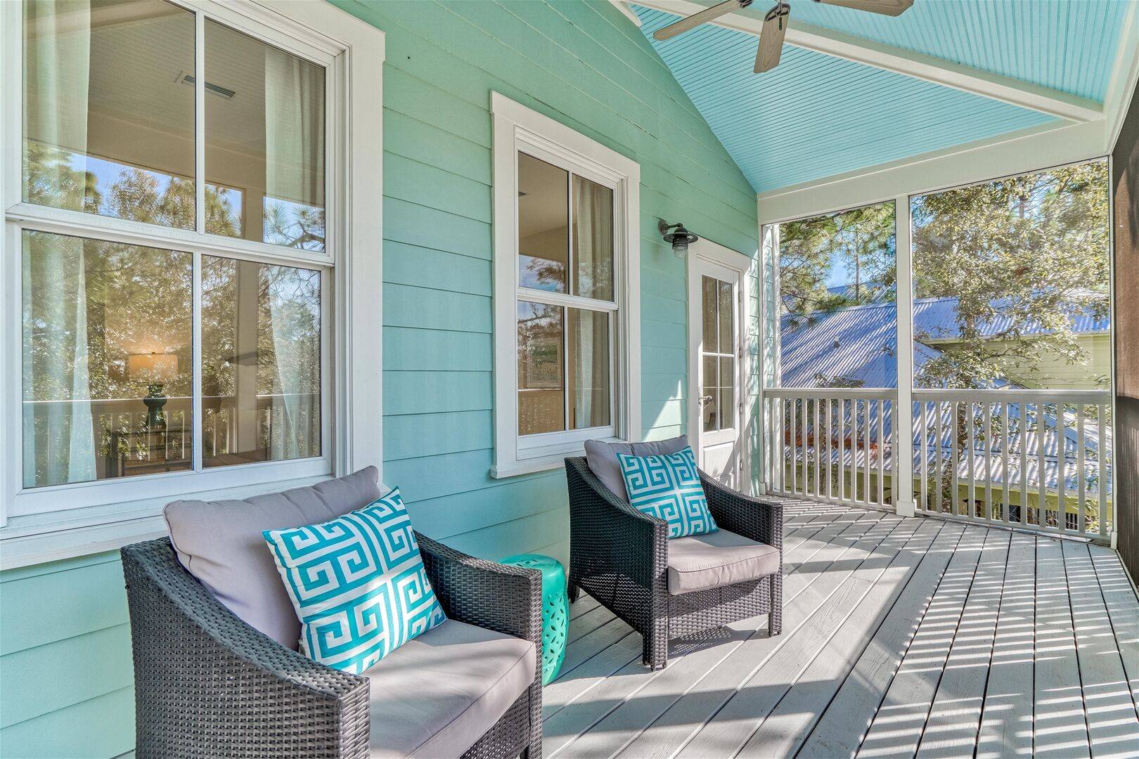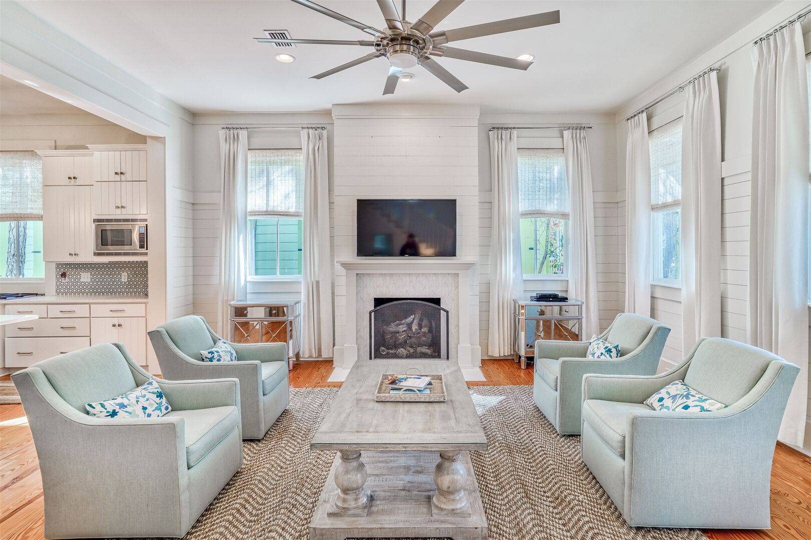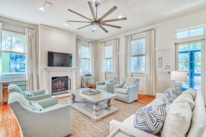 Wander through WaterColor’s gorgeous Camp District and you will find yourself at the doorstep of a coastal gem. Conveniently located just steps away from Camp WaterColor, 194 Spartina Circle is a charming three-story home, completely updated and spaciously arranged with 4 bedrooms, 4 baths plus a bunk nook, and two twin beds. A new 6-seater electric cart is also included with your reservation as well as 6 adult bikes, so look no further for your perfect WaterColor vacation home. Greeted by the chic blue color of the home, a screened porch and adorable bed swing, the evident theme of this home is luxurious comfort. Upon entering, the grand space cohesively flows, from the large living room with gas fireplace, to the fully equipped kitchen and onto the large formal dining room with seating for eight. Located also on the first floor is a lovely guest bedroom that overlooks the backyard living space and outdoor wood burning fireplace. Just down the hall is a shared bathroom with tub/shower combination as well as a large office/mudroom with bench seating and built-in bookcases that adjoin to a large laundry room. Ascending to the second floor, a large master suite features a beautifully finished bathroom and dressing room. A screened porch off the master provides a peaceful space for relaxing and enjoying the natural beauty of the WaterColor community. Separating the master suite from the two additional bedrooms (each with their own bathroom) is a bunk nook which can be disguised behind large, oversized sliding doors. Also located on the second floor is another large balcony accompanied by a cozy hammock that overlooks Camp WaterColor. The third-floor tower features beautiful panoramic views and two twin beds, making it the perfect spot for teens to enjoy their own space. Whether you are coming to play at the beach or snuggle by the outdoor fireplace during winter holidays - this eloquent home has something to offer year-round. Sanders Beach Rentals is ready to create your next unforgettable 30A vacation, let us help you book your stay today!