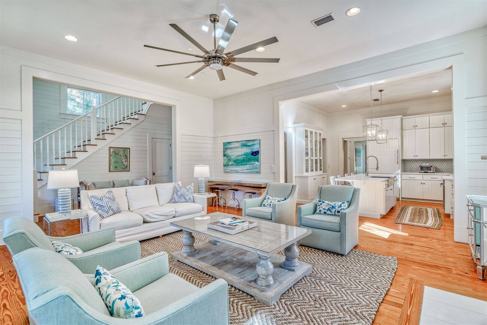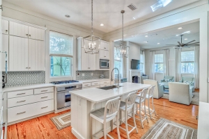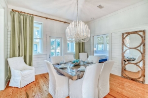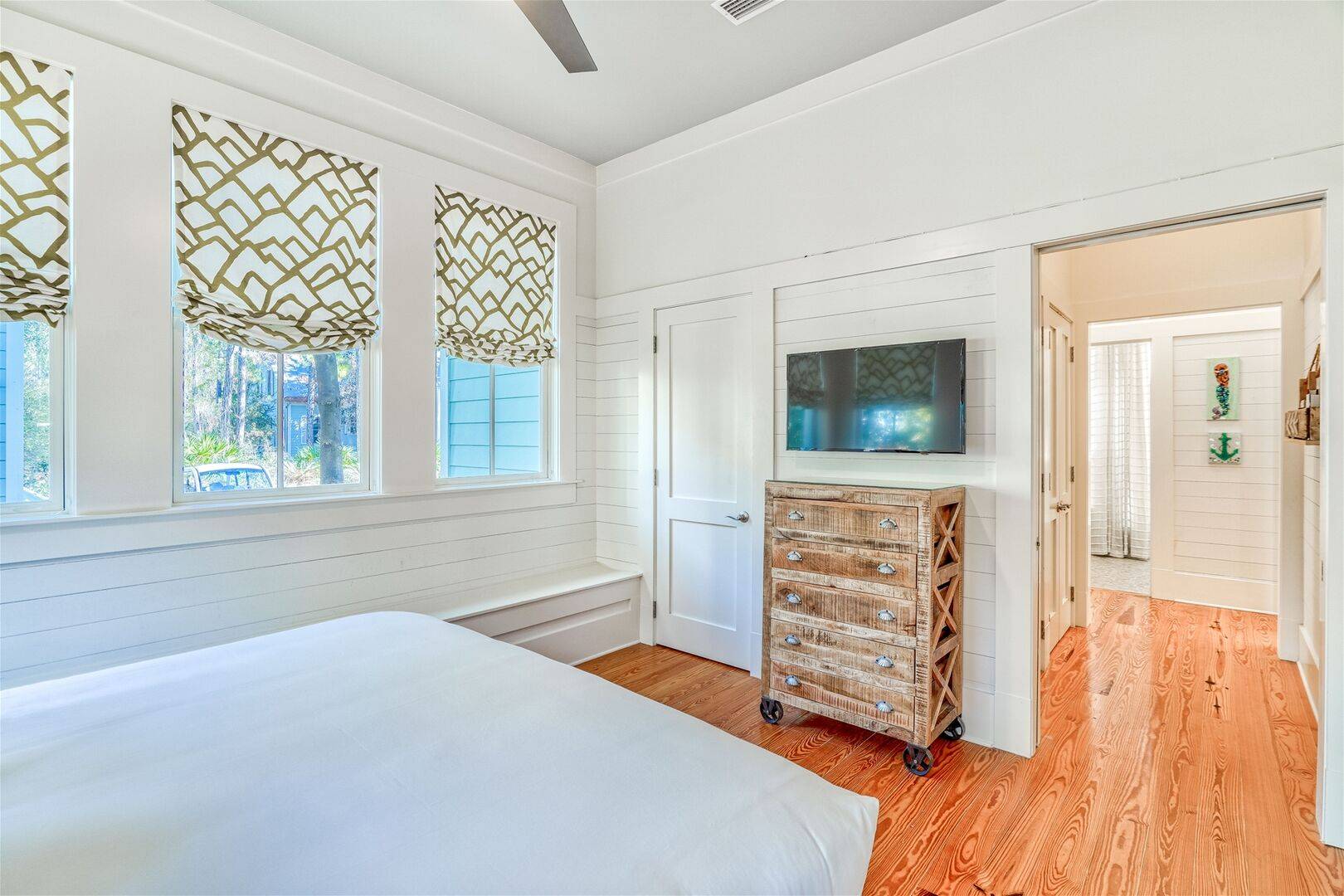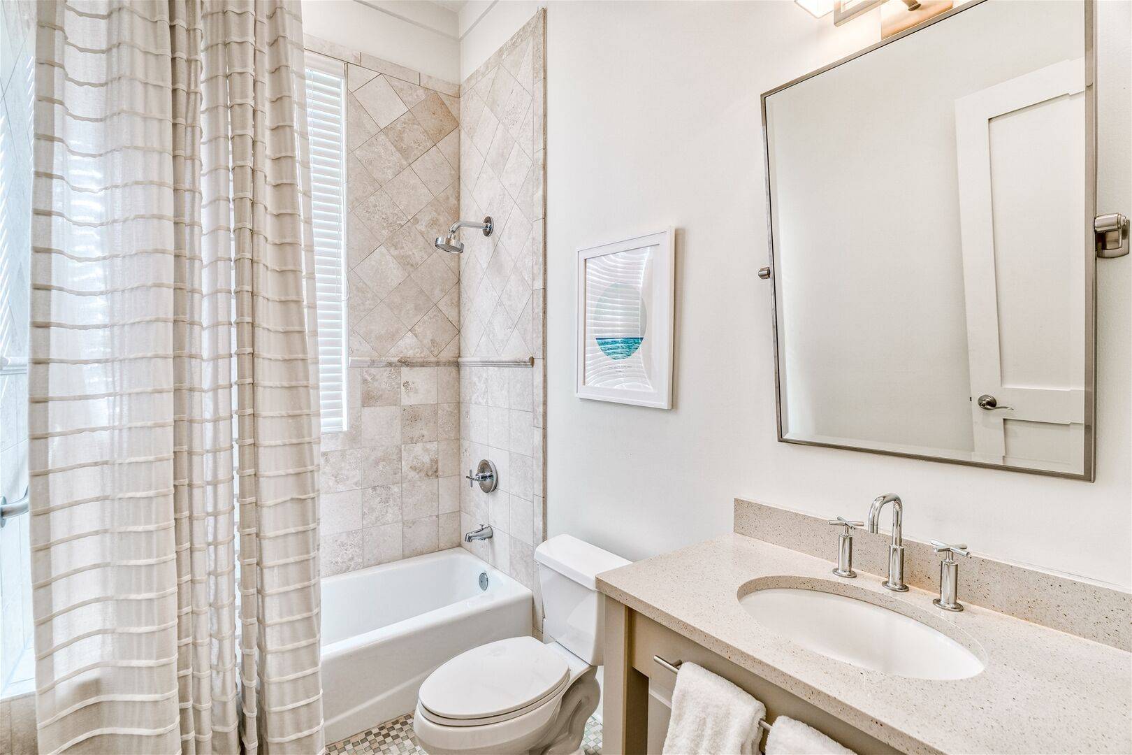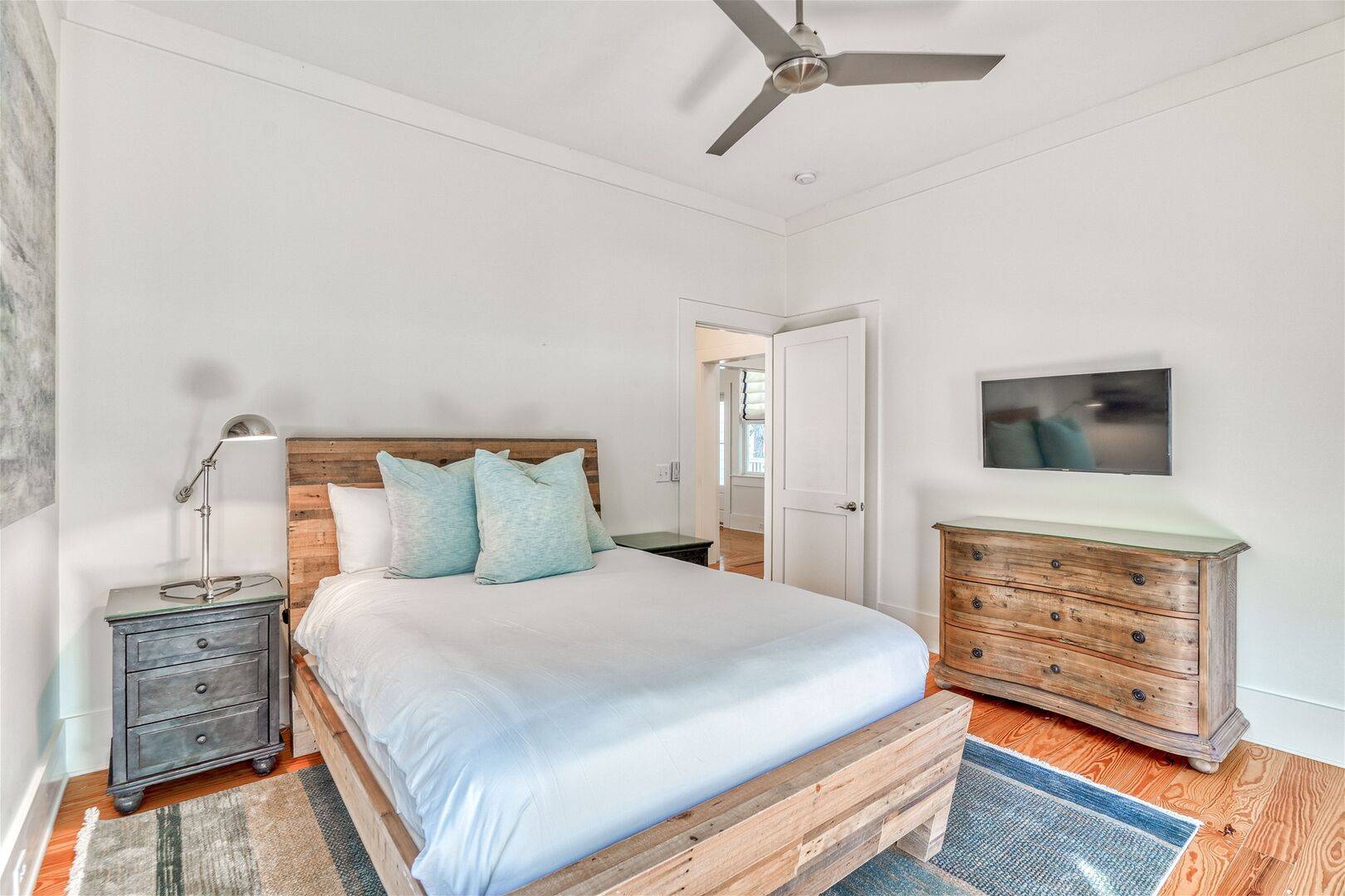 Wander through WaterColor’s gorgeous Camp District and you will find yourself at the doorstep of a coastal gem. Conveniently located just steps away from Camp WaterColor, 194 Spartina Circle is a charming three-story home, completely updated and spaciously arranged with 4 bedrooms, 4 baths plus a bunk nook, and two twin beds. A new 6-seater electric cart is also included with your reservation as well as 6 adult bikes, so look no further for your perfect WaterColor vacation home. Greeted by the chic blue color of the home, a screened porch and adorable bed swing, the evident theme of this home is luxurious comfort. Upon entering, the grand space cohesively flows, from the large living room with gas fireplace, to the fully equipped kitchen and onto the large formal dining room with seating for eight. Located also on the first floor is a lovely guest bedroom that overlooks the backyard living space and outdoor wood burning fireplace. Just down the hall is a shared bathroom with tub/shower combination as well as a large office/mudroom with bench seating and built-in bookcases that adjoin to a large laundry room. Ascending to the second floor, a large master suite features a beautifully finished bathroom and dressing room. A screened porch off the master provides a peaceful space for relaxing and enjoying the natural beauty of the WaterColor community. Separating the master suite from the two additional bedrooms (each with their own bathroom) is a bunk nook which can be disguised behind large, oversized sliding doors. Also located on the second floor is another large balcony accompanied by a cozy hammock that overlooks Camp WaterColor. The third-floor tower features beautiful panoramic views and two twin beds, making it the perfect spot for teens to enjoy their own space. Whether you are coming to play at the beach or snuggle by the outdoor fireplace during winter holidays - this eloquent home has something to offer year-round. Sanders Beach Rentals is ready to create your next unforgettable 30A vacation, let us help you book your stay today!