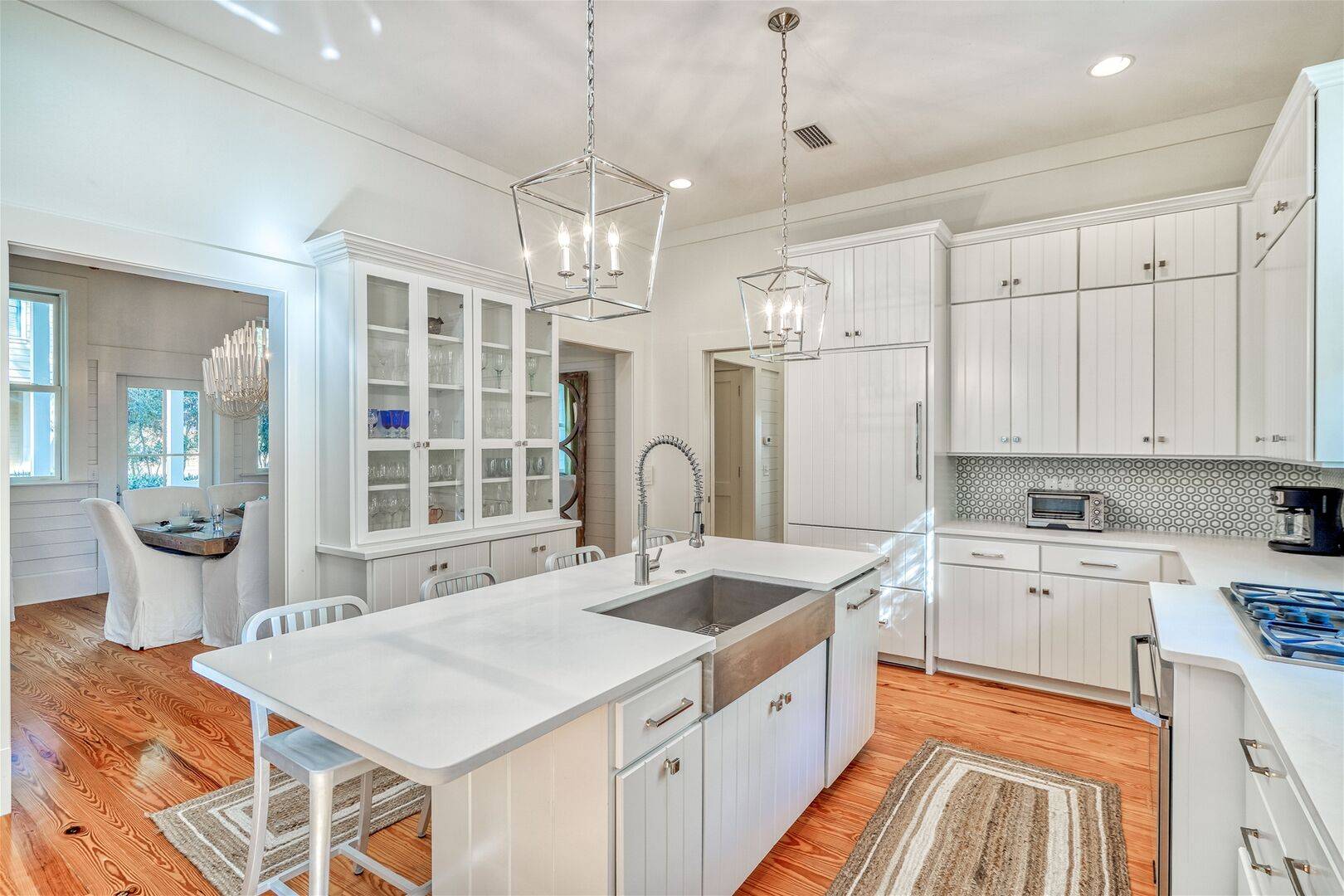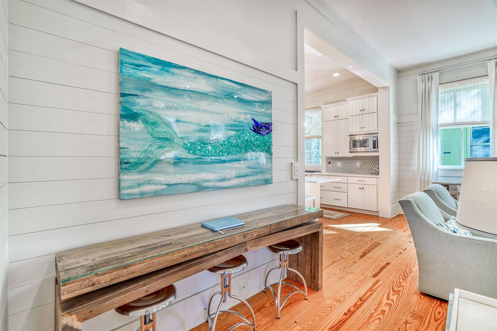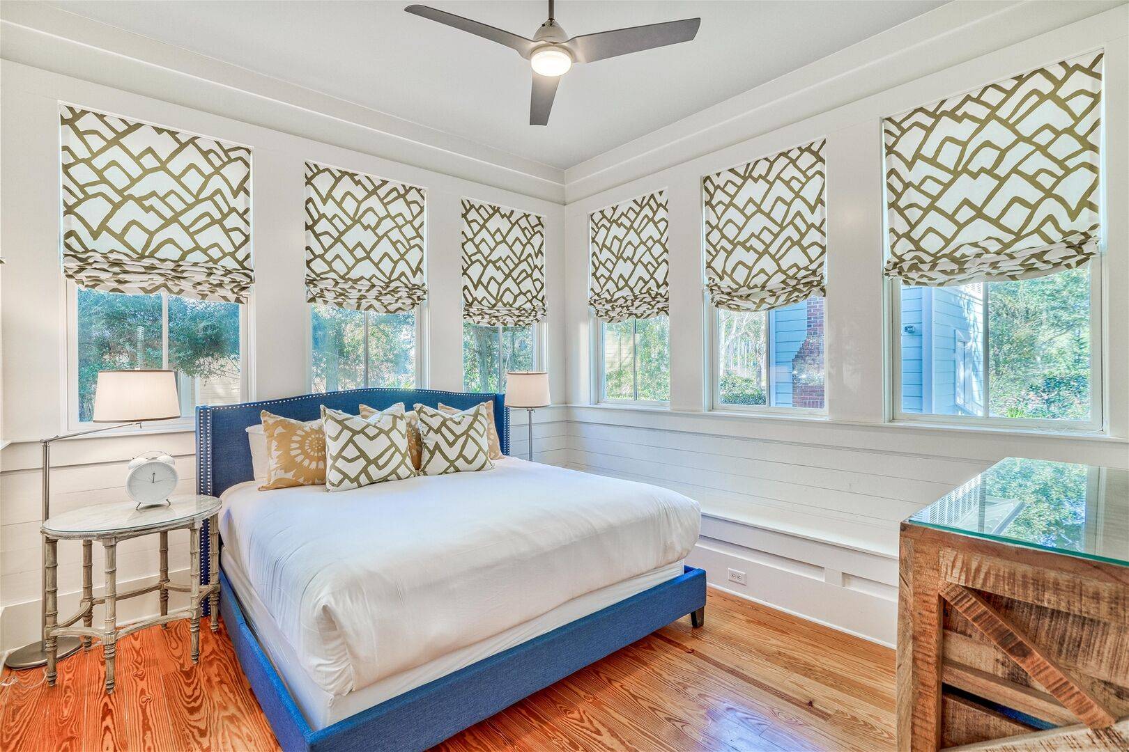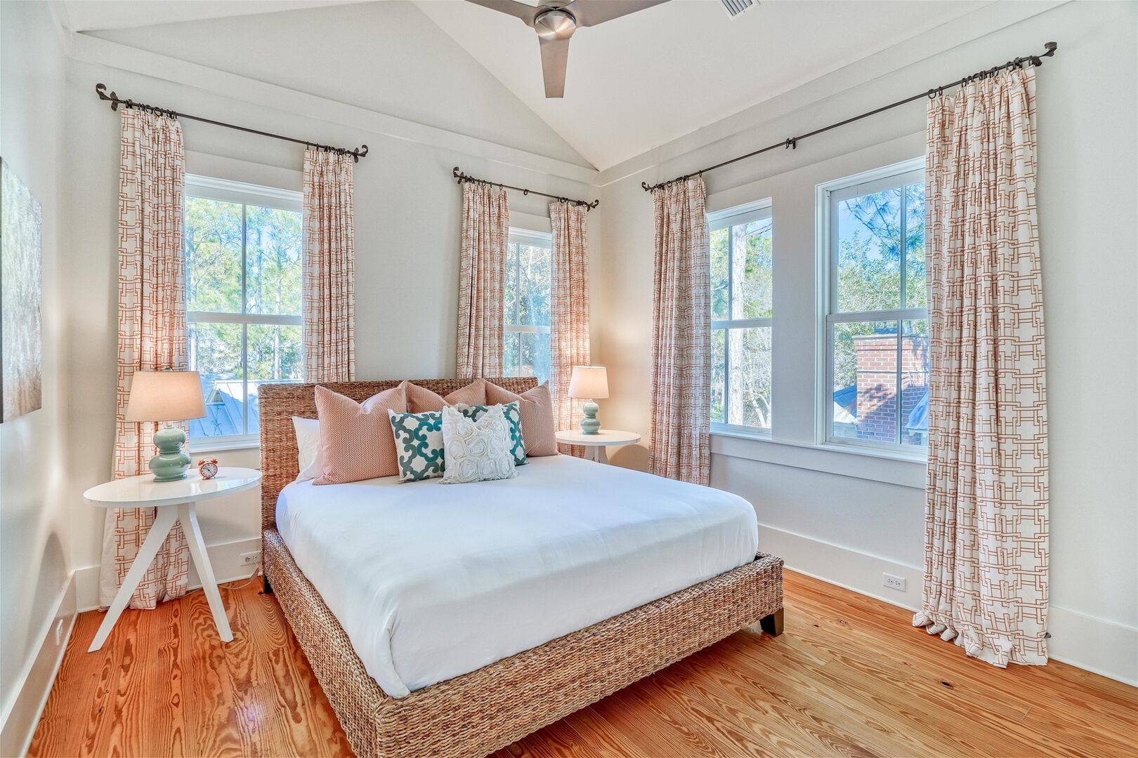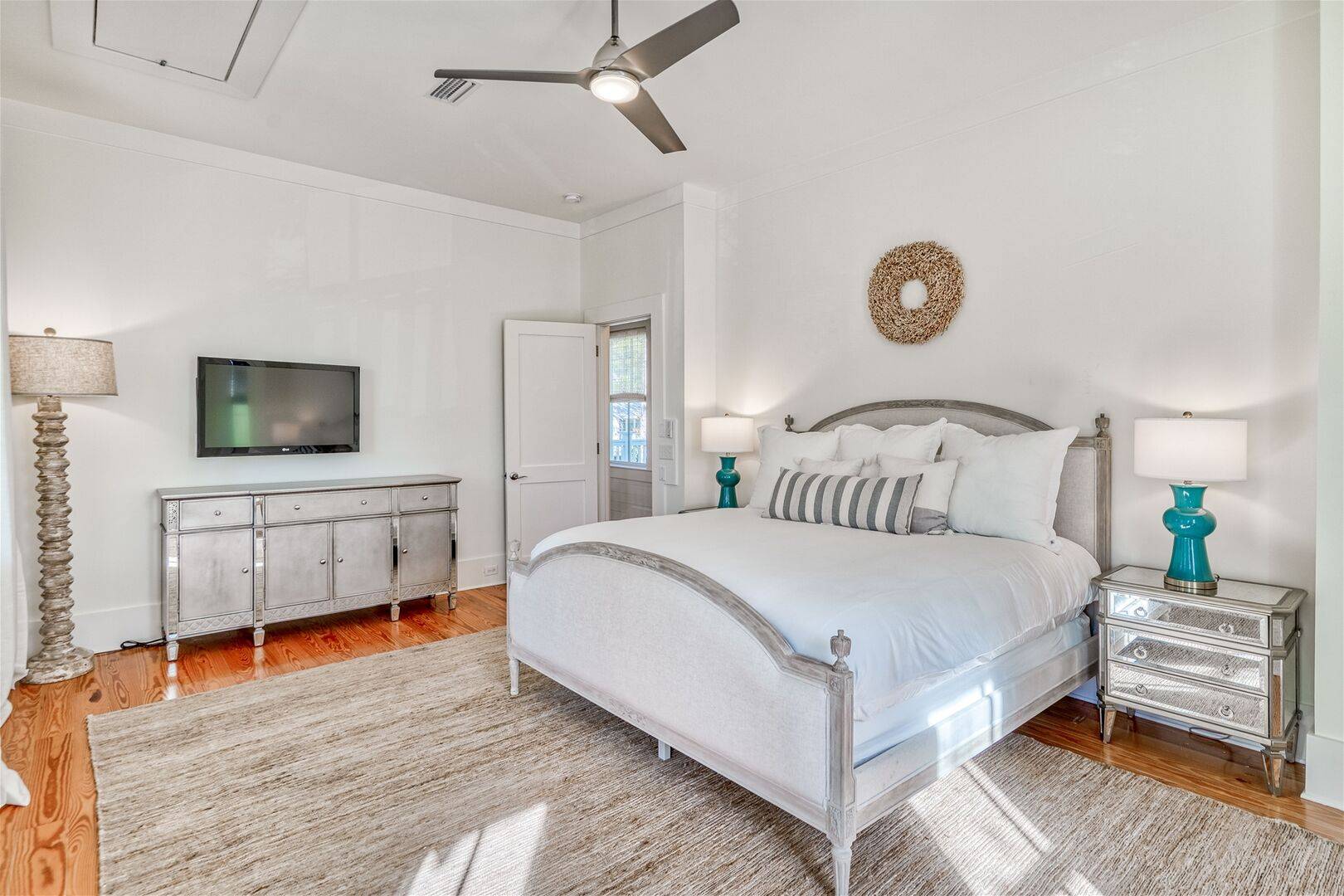 Wander through WaterColor’s gorgeous Camp District and you will find yourself at the doorstep of a coastal gem. Conveniently located just steps away from Camp WaterColor, 194 Spartina Circle is a charming three-story home, completely updated and spaciously arranged with 4 bedrooms, 4 baths plus a bunk nook, and two twin beds. A new 6-seater electric cart is also included with your reservation as well as 6 adult bikes, so look no further for your perfect WaterColor vacation home. Greeted by the chic blue color of the home, a screened porch and adorable bed swing, the evident theme of this home is luxurious comfort. Upon entering, the grand space cohesively flows, from the large living room with gas fireplace, to the fully equipped kitchen and onto the large formal dining room with seating for eight. Located also on the first floor is a lovely guest bedroom that overlooks the backyard living space and outdoor wood burning fireplace. Just down the hall is a shared bathroom with tub/shower combination as well as a large office/mudroom with bench seating and built-in bookcases that adjoin to a large laundry room. Ascending to the second floor, a large master suite features a beautifully finished bathroom and dressing room. A screened porch off the master provides a peaceful space for relaxing and enjoying the natural beauty of the WaterColor community. Separating the master suite from the two additional bedrooms (each with their own bathroom) is a bunk nook which can be disguised behind large, oversized sliding doors. Also located on the second floor is another large balcony accompanied by a cozy hammock that overlooks Camp WaterColor. The third-floor tower features beautiful panoramic views and two twin beds, making it the perfect spot for teens to enjoy their own space. Whether you are coming to play at the beach or snuggle by the outdoor fireplace during winter holidays - this eloquent home has something to offer year-round. Sanders Beach Rentals is ready to create your next unforgettable 30A vacation, let us help you book your stay today!