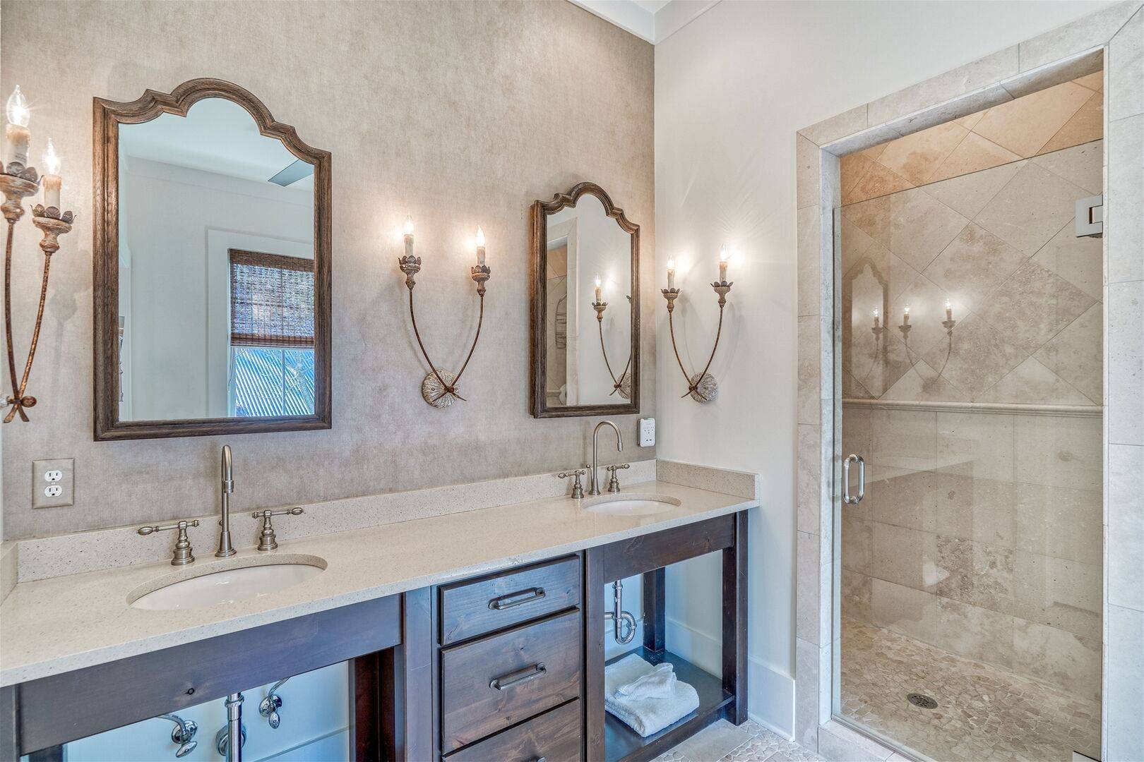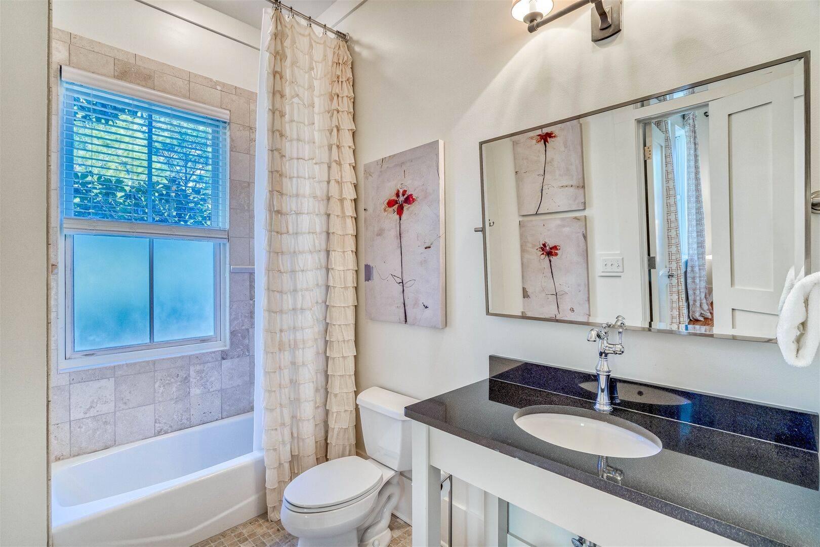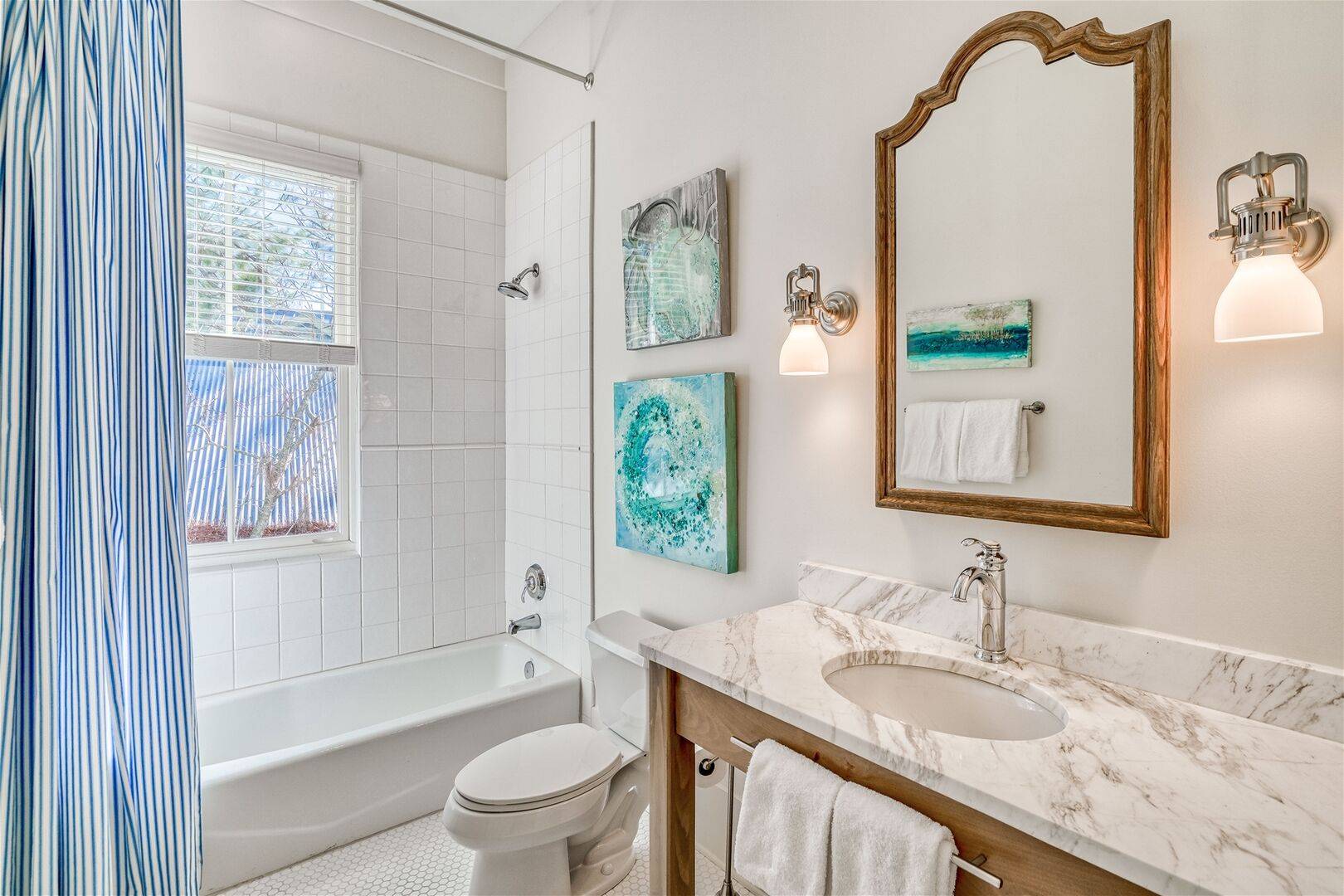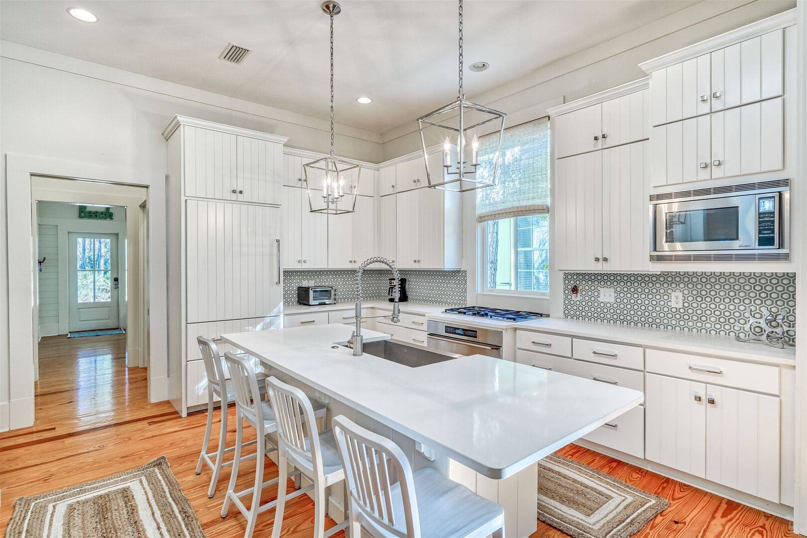 Wander through WaterColor’s gorgeous Camp District and you will find yourself at the doorstep of a coastal gem. Conveniently located just steps away from Camp WaterColor, 194 Spartina Circle is a charming three-story home, completely updated and spaciously arranged with 4 bedrooms, 4 baths plus a bunk nook, and two twin beds. A new 6-seater electric cart is also included with your reservation as well as 6 adult bikes, so look no further for your perfect WaterColor vacation home. Greeted by the chic blue color of the home, a screened porch and adorable bed swing, the evident theme of this home is luxurious comfort. Upon entering, the grand space cohesively flows, from the large living room with gas fireplace, to the fully equipped kitchen and onto the large formal dining room with seating for eight. Located also on the first floor is a lovely guest bedroom that overlooks the backyard living space and outdoor wood burning fireplace. Just down the hall is a shared bathroom with tub/shower combination as well as a large office/mudroom with bench seating and built-in bookcases that adjoin to a large laundry room. Ascending to the second floor, a large master suite features a beautifully finished bathroom and dressing room. A screened porch off the master provides a peaceful space for relaxing and enjoying the natural beauty of the WaterColor community. Separating the master suite from the two additional bedrooms (each with their own bathroom) is a bunk nook which can be disguised behind large, oversized sliding doors. Also located on the second floor is another large balcony accompanied by a cozy hammock that overlooks Camp WaterColor. The third-floor tower features beautiful panoramic views and two twin beds, making it the perfect spot for teens to enjoy their own space. Whether you are coming to play at the beach or snuggle by the outdoor fireplace during winter holidays - this eloquent home has something to offer year-round. Sanders Beach Rentals is ready to create your next unforgettable 30A vacation, let us help you book your stay today!