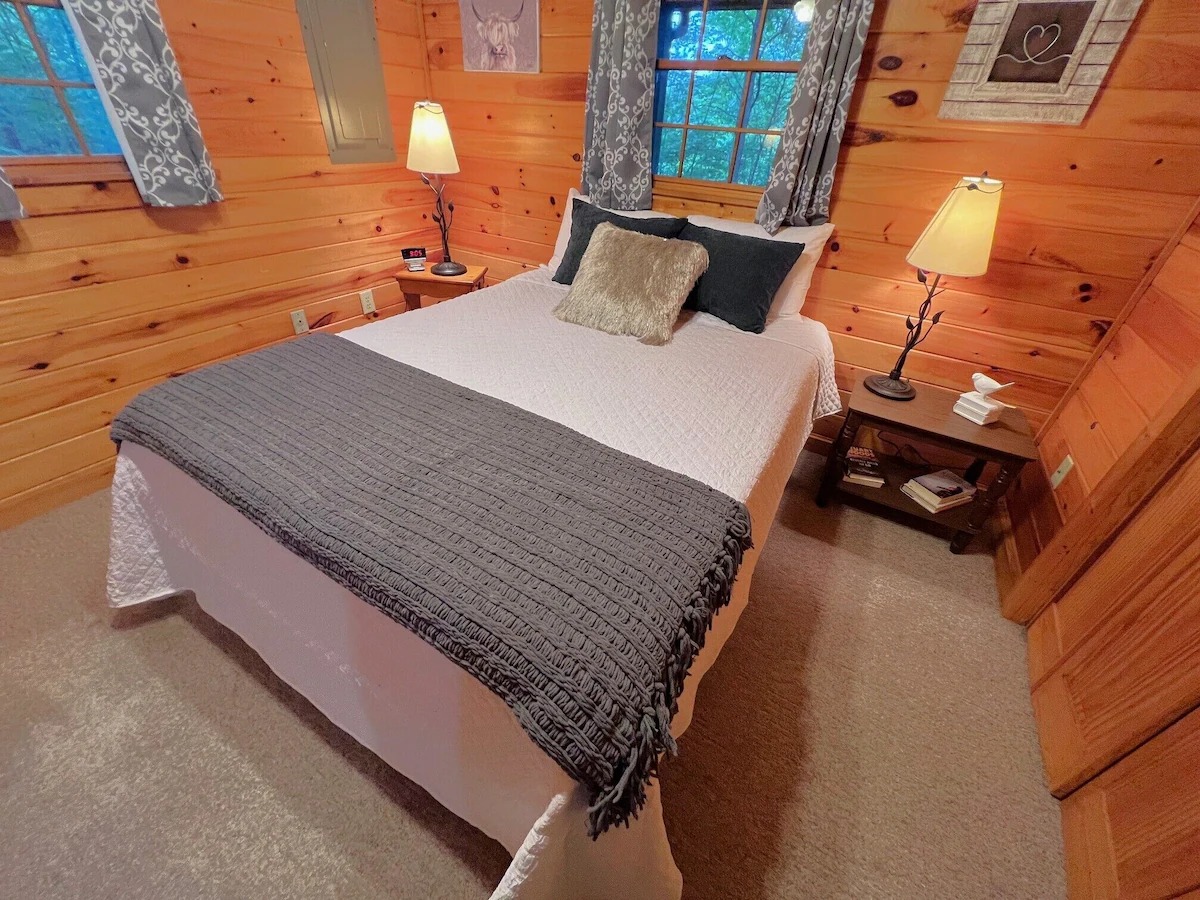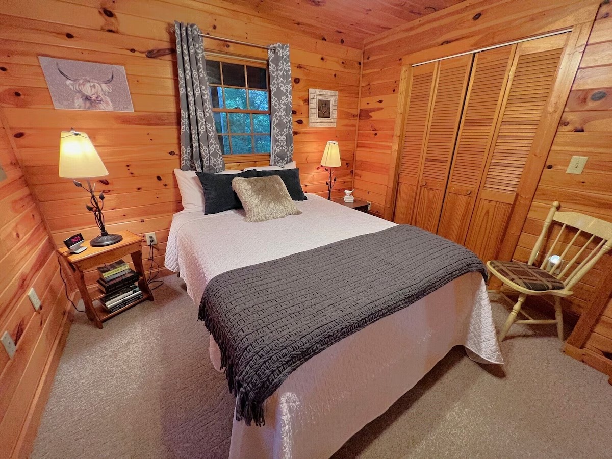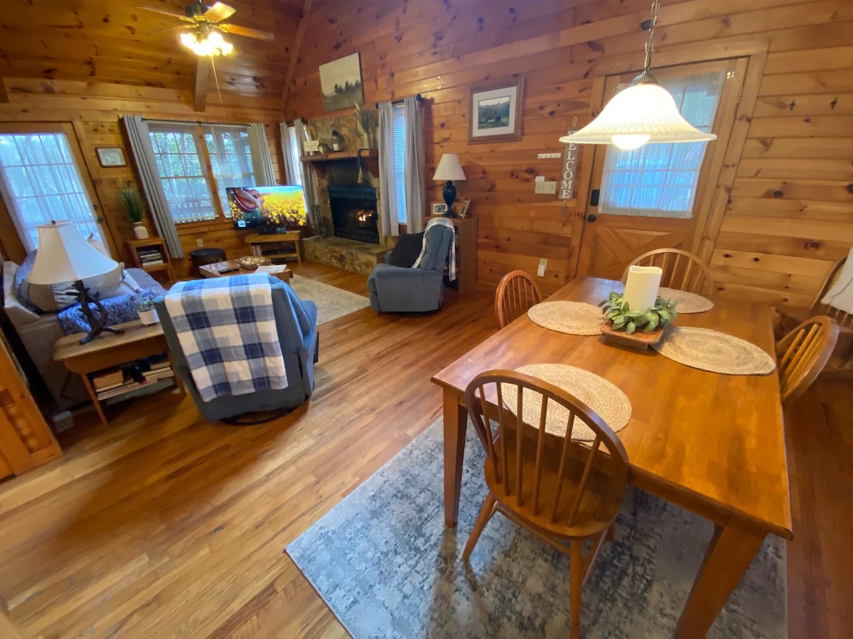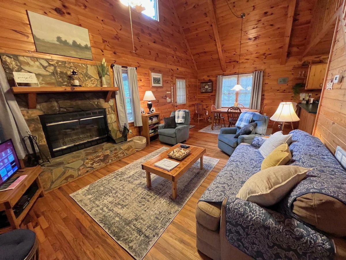 2 bedroom 1-bath secluded cabin is perfect for that romantic interlude. Cozy up to the wood-burning fireplace or enjoy a relaxing afternoon on the screened porch. Get away to Toby's Place!