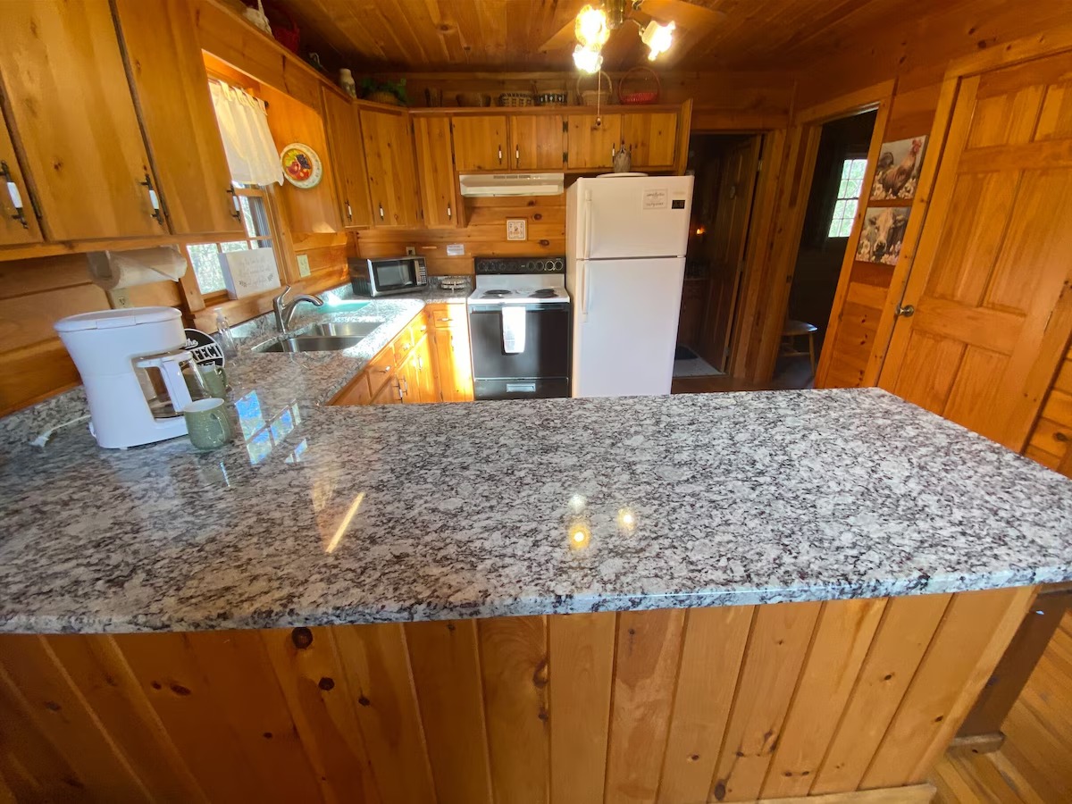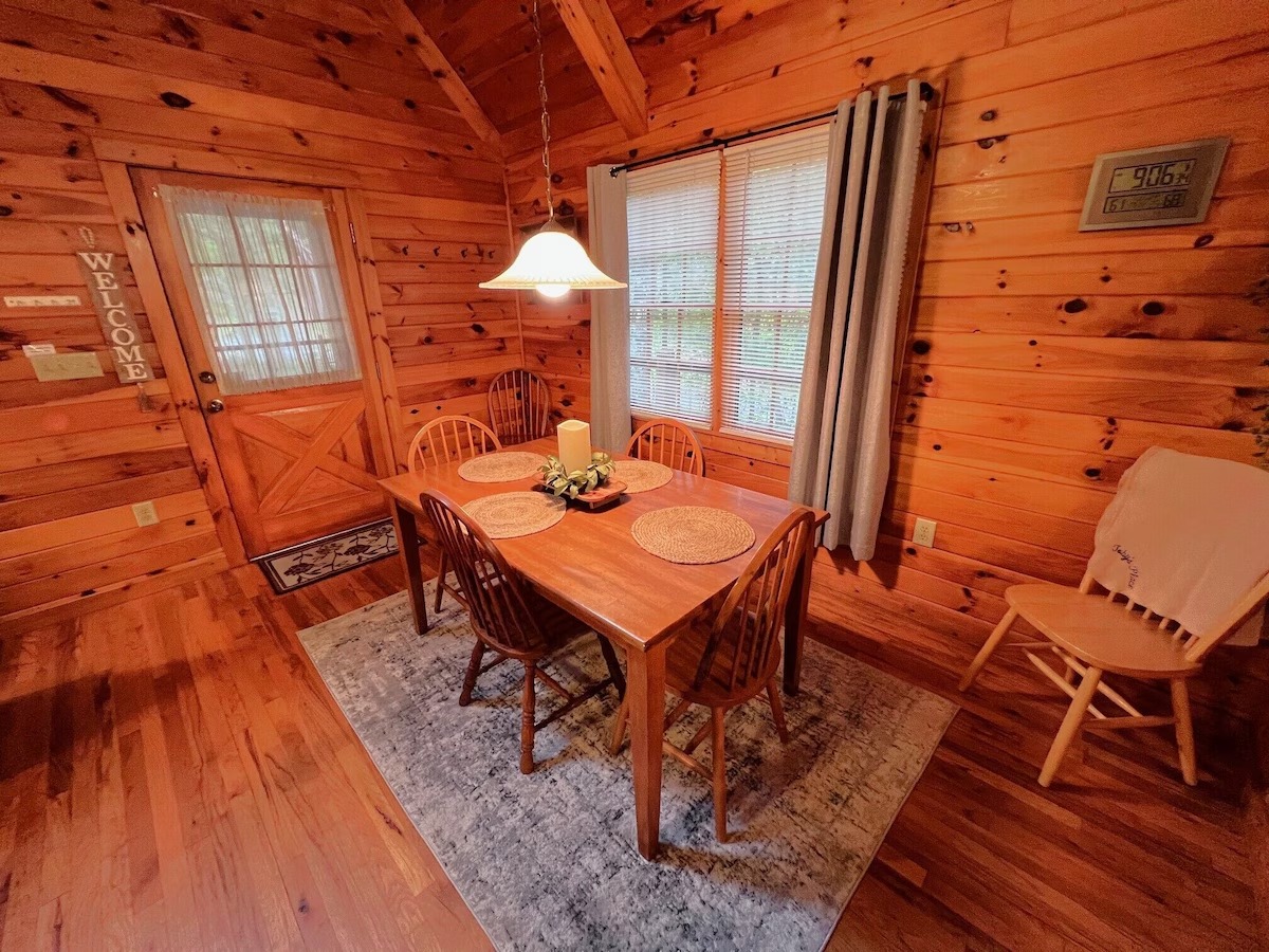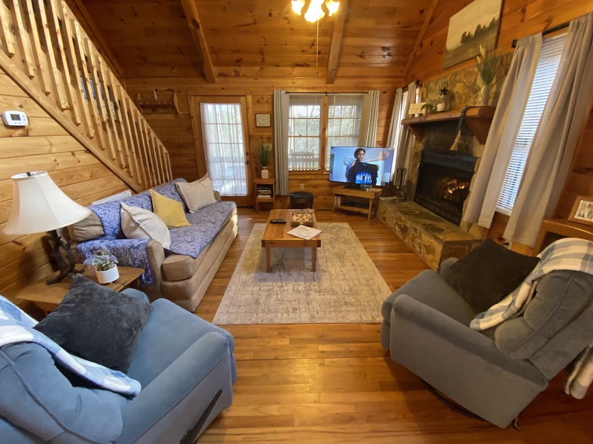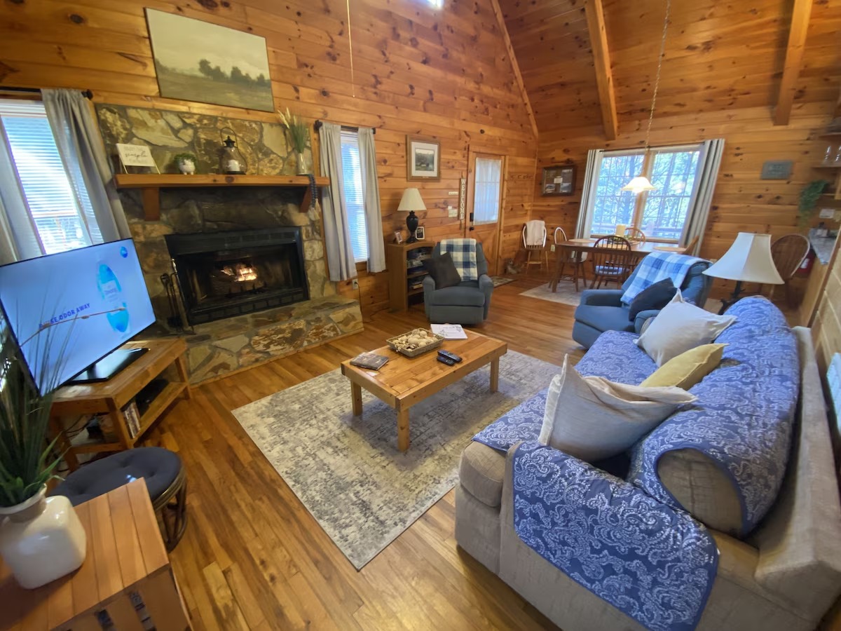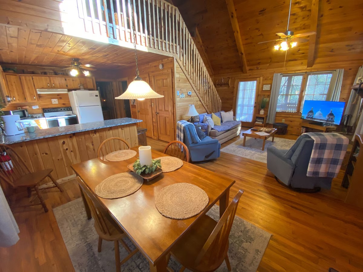 2 bedroom 1-bath secluded cabin is perfect for that romantic interlude. Cozy up to the wood-burning fireplace or enjoy a relaxing afternoon on the screened porch. Get away to Toby's Place!