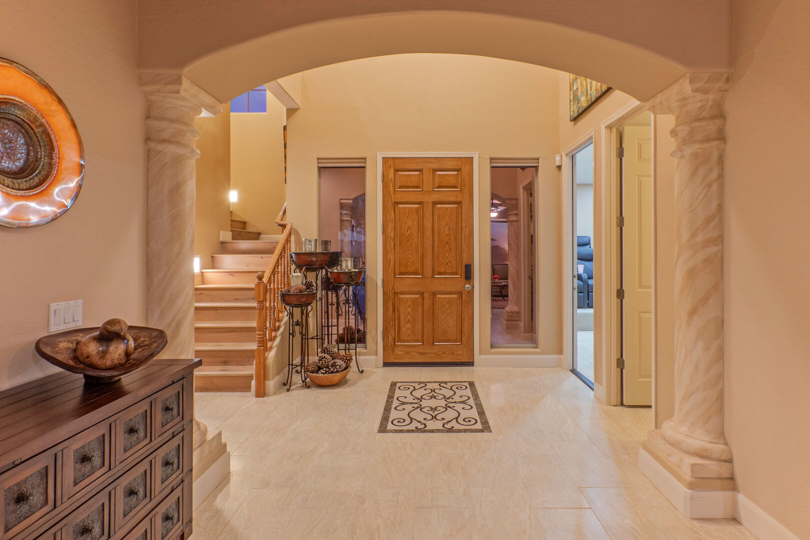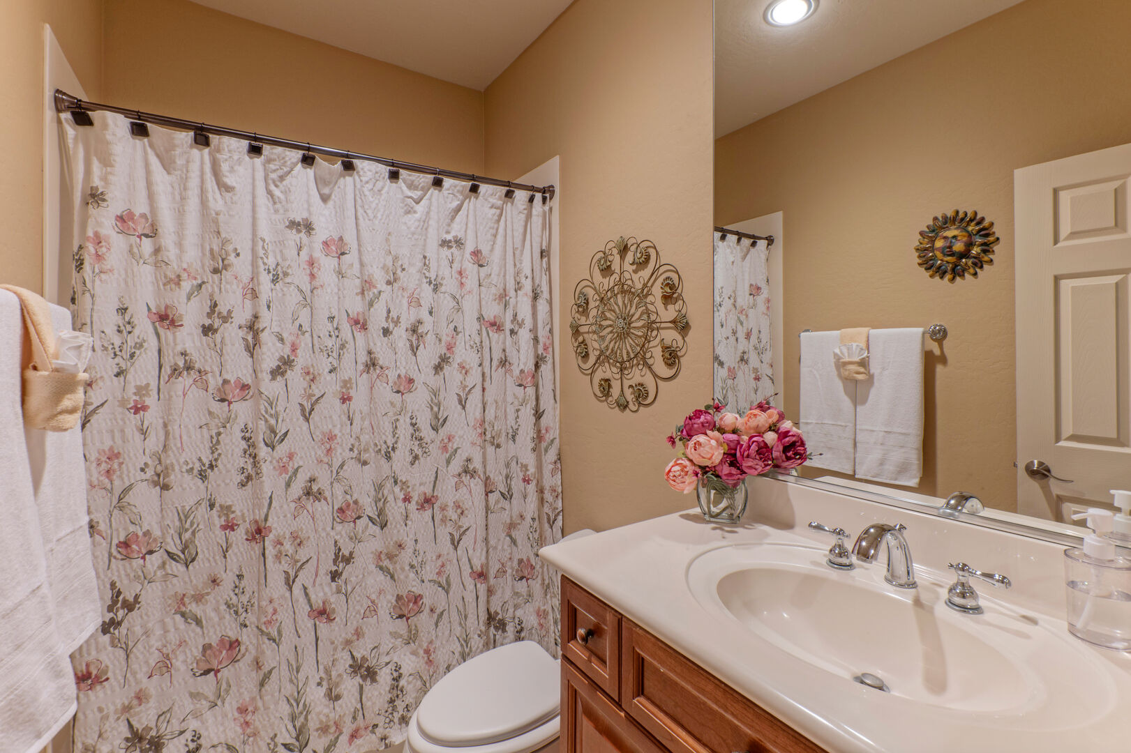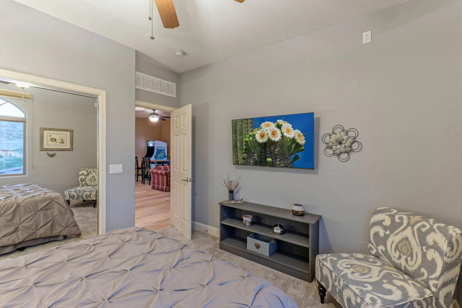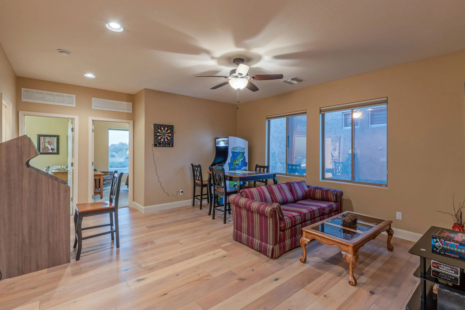 The small front facing garage bay has been converted to a theater room where you can immerse yourself in action and adventure experiences on the large screen. Two fully stocked laundry rooms, one upstairs and one on the ground floor, help you keep your wardrobe ready for your Arizona adventures. There are 2 garage spaces for cars and additional parking for one vehicle on the driveway.