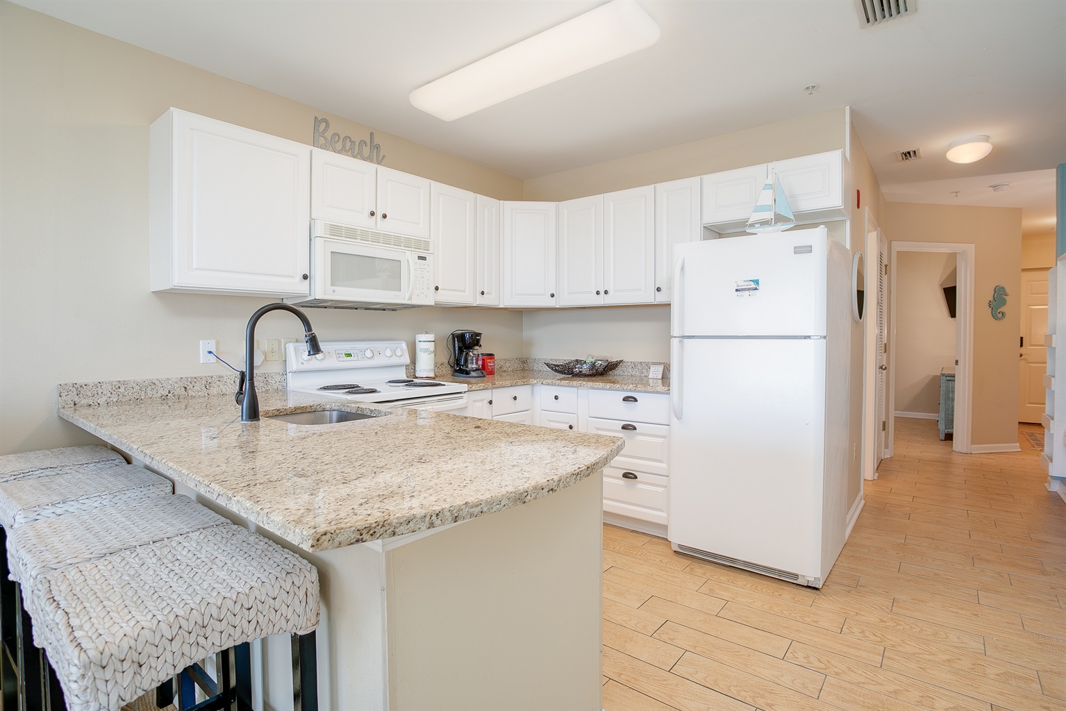 Located in the center of everything in Orange Beach, AL including the most stunning beaches of the Gulf of Mexico. This 1-bedroom Grand Caribbean unit is all you need for your next beach getaway. It is a quick walk to the Sparkling pool, hiking trails and the boat launch and is very convenient to the cross-walk over to Cotton Bayou Beach access where you can experience all the fun in the sun on Alabama`s beautiful gulf beaches. Also walking distance to stores and restaurants and in 2023 the new shops of CoastAL located directly on the beach. When you`re ready for a break from the outdoors, relax and play games in the living room, enjoy preparing a meal in the fully stocked kitchen or unwind on you private balcony. With a queen bed in the master, a pullout queen sofa in the living room and a bonus bunk bed in the hallway this condo will sleep 6. With this 2nd floor private balcony you are in the best position to watch the Gorgeous Sunsets and Sunrises.