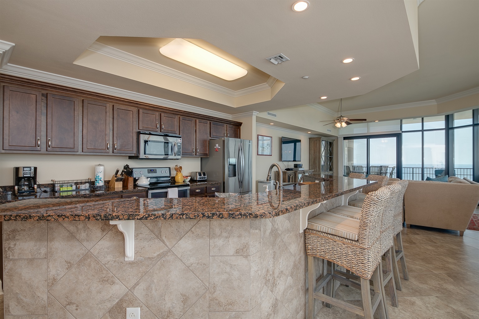 We had a great stay. The condo has amazing views, an awesome balcony, and plenty of windows to gaze out at the sea. The location is great with plenty of restaurants close by. My family loved The Angry Crab shack that is a close drive. Great place to vacation.