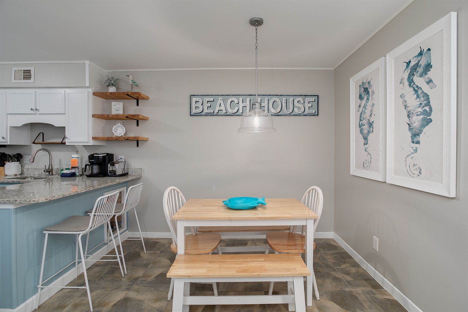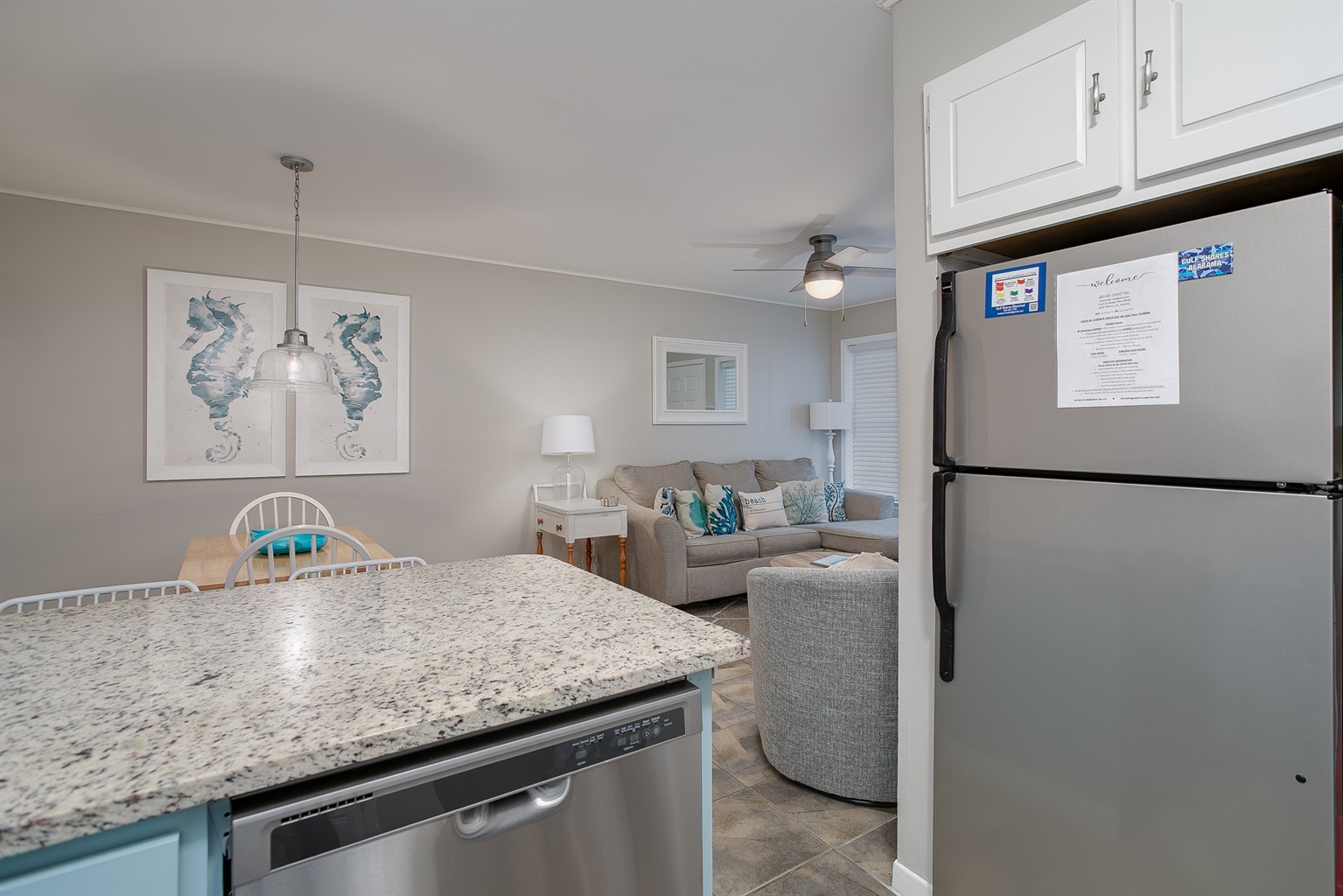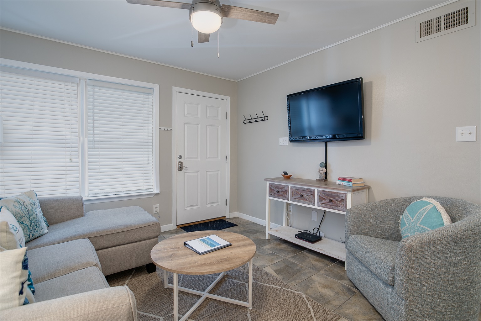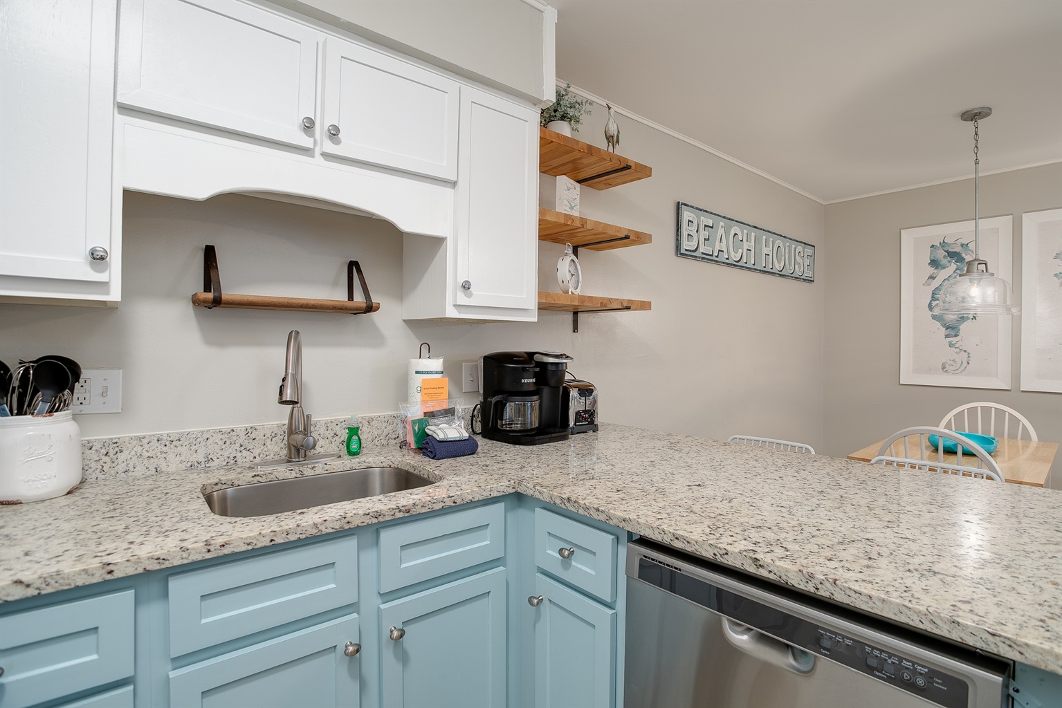 Condo was extremely clean. Not even a speck of sand inside. Beautifully decorated. Had everything we needed. Nice fluffy towels. Bathroom was very clean. Washer and dryer worked great. Outside was well lit. Stairs were very safe with handrails. Parking spaces were nice and wide for SUV parking. Trash bin was just beside parking lot. Had plenty of trash bags, paper towels, and toilet paper. Everything was as promised. Our family felt very safe staying in this condo. Couldn't hear traffic or noises from outside. Nice and quiet. Lots of food and shopping options nearby. Owner was great to work with, although I didn't need to contact for much at all because everything was great. The beach was just steps from the parking lot.