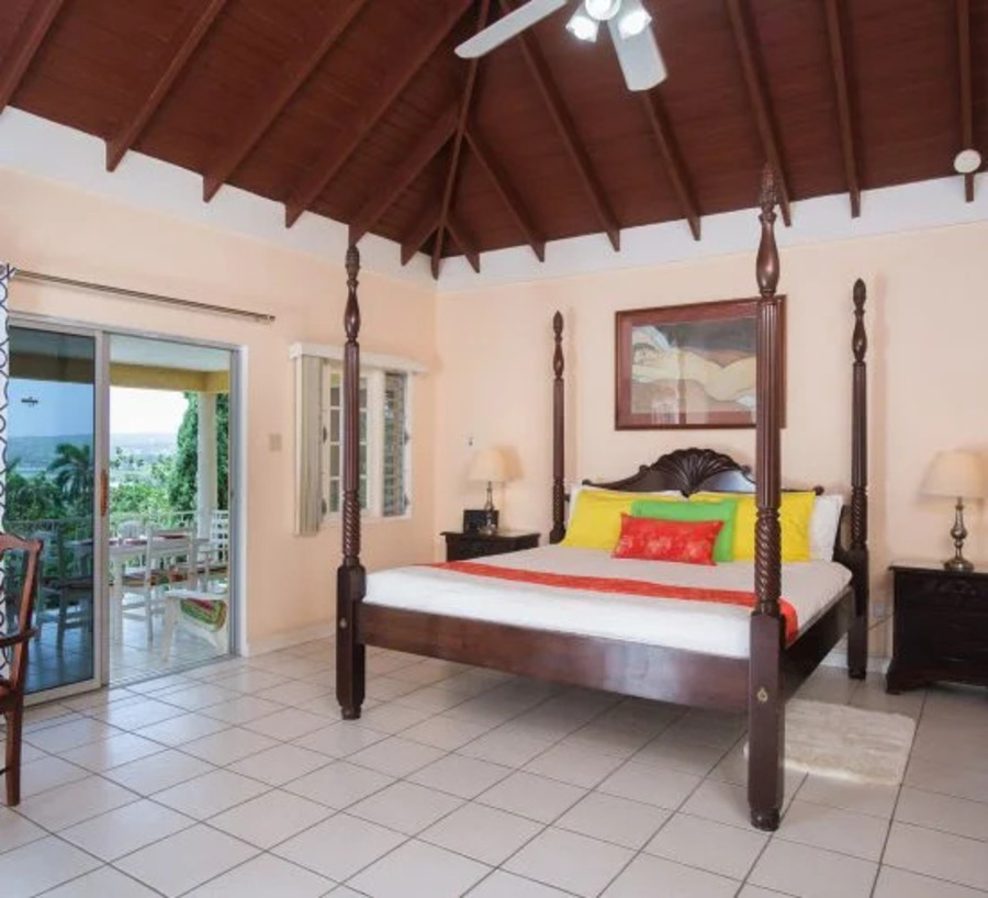 The five bedrooms at Bogue Villa offer spectacular views, cable television, overhead fans and air conditioning. The master bedroom has a king-size bed and opens out to a spacious veranda overlooking the pool with Montego Bay and the glittering Caribbean Sea in full view. It also has a connecting door that leads to another bedroom, which is perfect for families with small children. The second bedroom contains two double beds, and the other two bedrooms contain one double bed each. The fifth bedroom is furnished with a queen-sized bed.