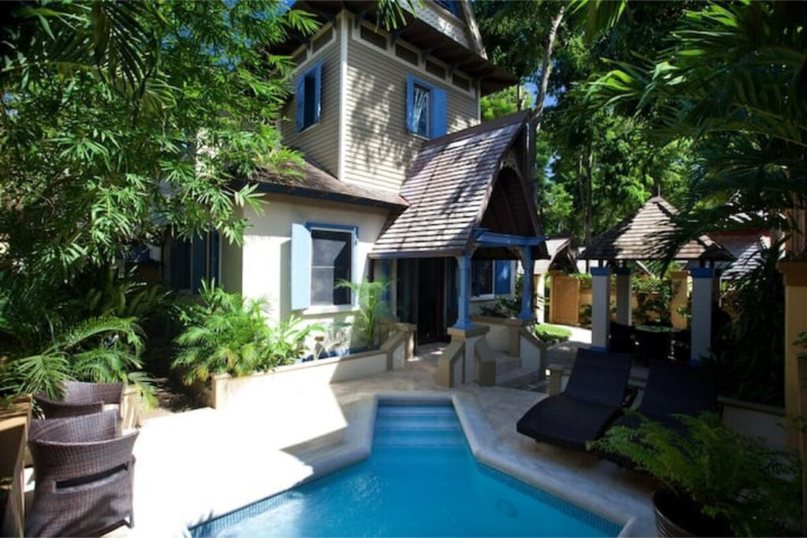 BREADFRUIT SUITE FOR 2 PERSONS WITH PRIVATE DIP POOL- From its cozy interior, Breadfruit’s glistening pool beckons you outside to a spacious walled garden. After a dip, rinse off in your outdoor rain shower. Order room service to the dining pavilion, or prepare your own meal in the fully stocked kitchen. Then bask on your private patio or lounge on your king-sized bed.