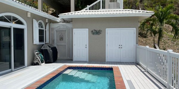 Take a dip in your private pool to cool down after a day at the Beach. Enjoy the large sundeck and a convenient outdoor bathroom. Sunshine all day and a covered veranda gets you out of the sun and cool off with the ceiling fans. Watch the Moon come over the Pool and the brilliant Stars dancing in the sky while sipping a Caribbean Cocktail. In the morning sit on the deck with your Breakfast and Coffee and watch the Hummingbirds and Yellow Birds greet the new day.