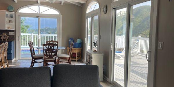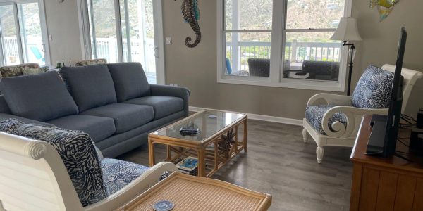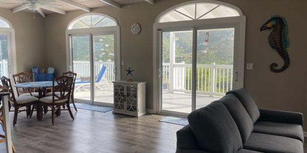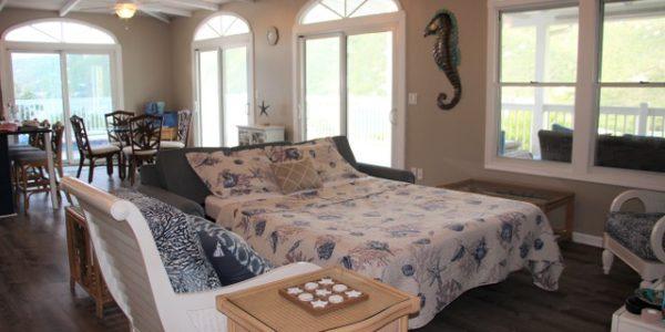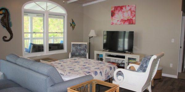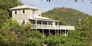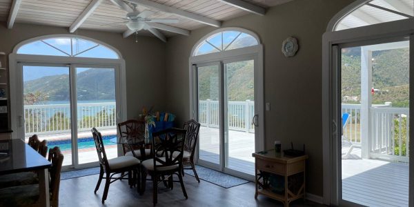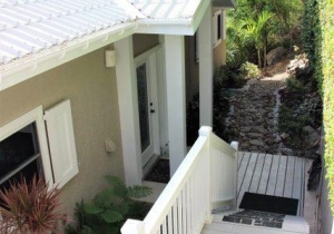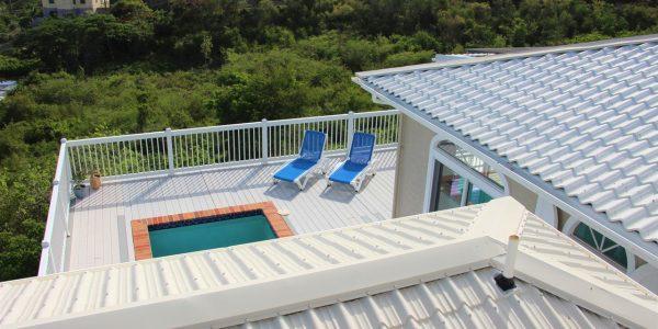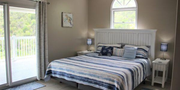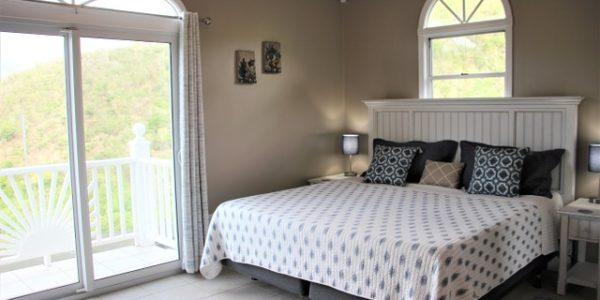 Drive up Seagrape Hill to Desert Rose which offers an excellent parking platform for 2 cars. Steps lead down to an open Caribbean style private home. Desert Rose Villa is decorated in a classy but warm feel. Enjoy the cooling, gentle tropical breezes all day and night. Beautiful views of Coral Bay, Moravian Church and Bordeaux Mountain. Enjoy cooking in our gourmet kitchen with granite countertops and new stainless steel appliances and a comfortable island to eat at. The Great Room with its vaulted ceiling and ceiling fans is perfect to read, listen to music, watch T.V. or do nothing at all. The lower Bedroom with new king bed and furniture opens onto the spacious covered deck and a Spiral Staircase leads to the upper Bedroom that also has a new king bed and furniture that has a Balcony that looks over the Moravian Church and out to Coral Bay. Both Bedrooms have large lit closets with sliding doors that are mirrored. The Bathrooms both have ceramic title murals in the showers and glass block partitions.