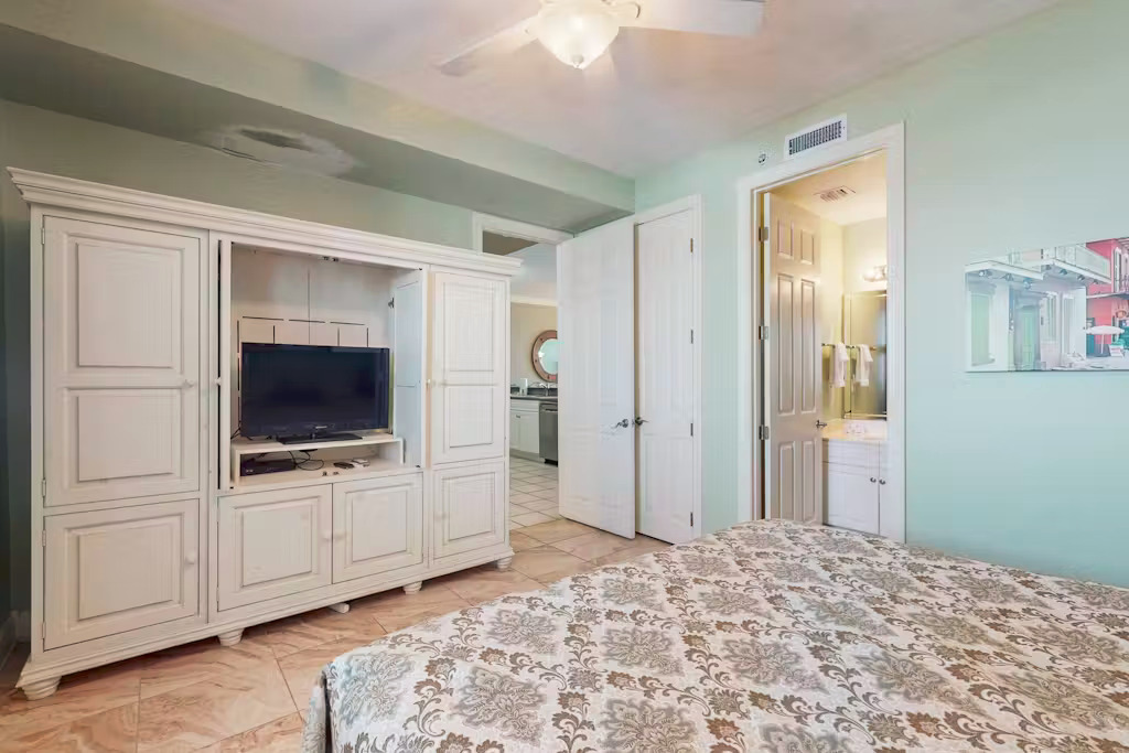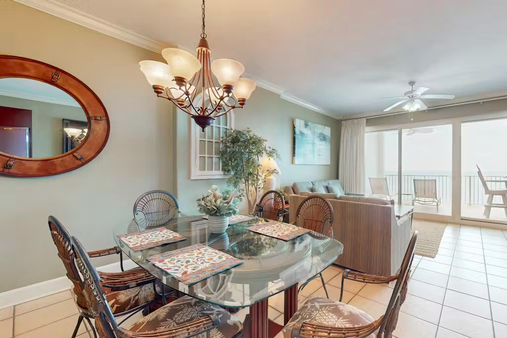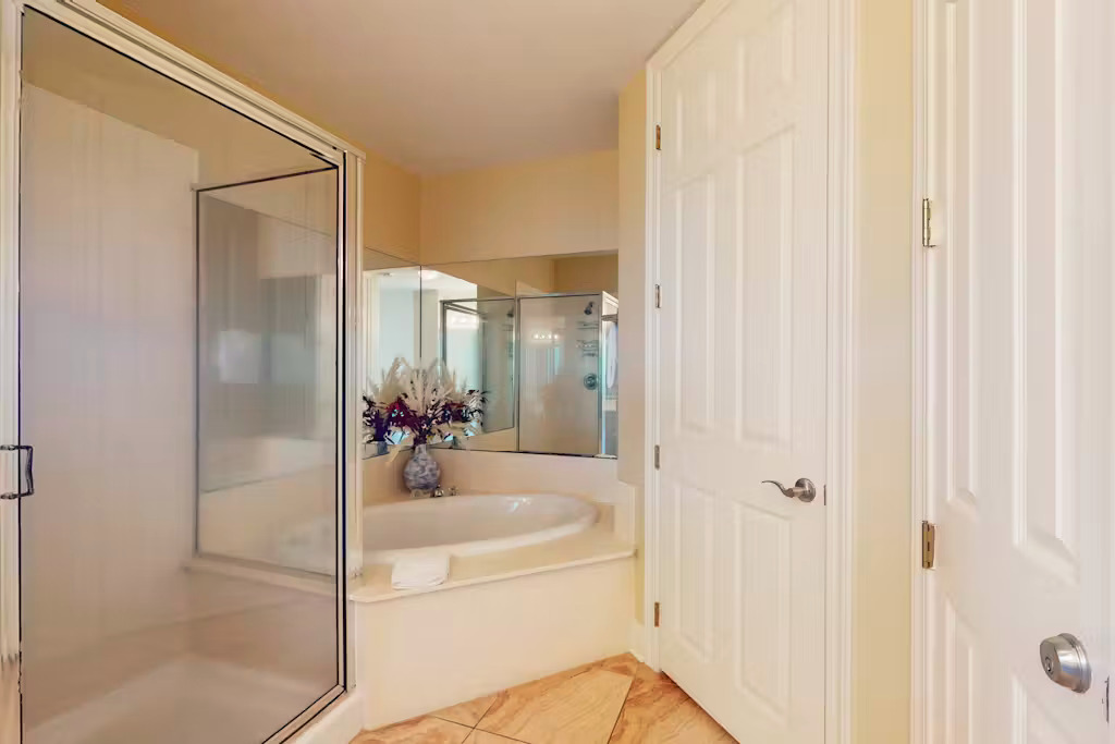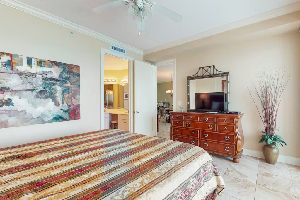 Rich jewel tones resonate throughout this beautifully-furnished beachfront property located on the 9th floor where the water views extend to the horizon. Upscale tile floors and tasteful decor distinguish Regency Isle 903 and beckon you to stretch out and relax. Access to the oversize balcony is yours from both the master bedroom and the living area. King size beds are provided in both bedrooms and a sofa sleeper rounds out the total accommodations to six people. Your master suite includes a Jacuzzi tub and separate shower and a wet bar is located in the living area. Rediscover your passion for the coast at this amazing retreat location.