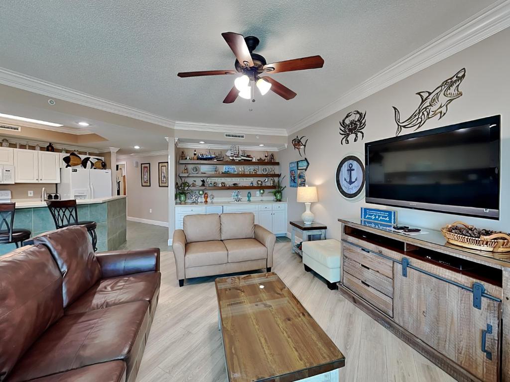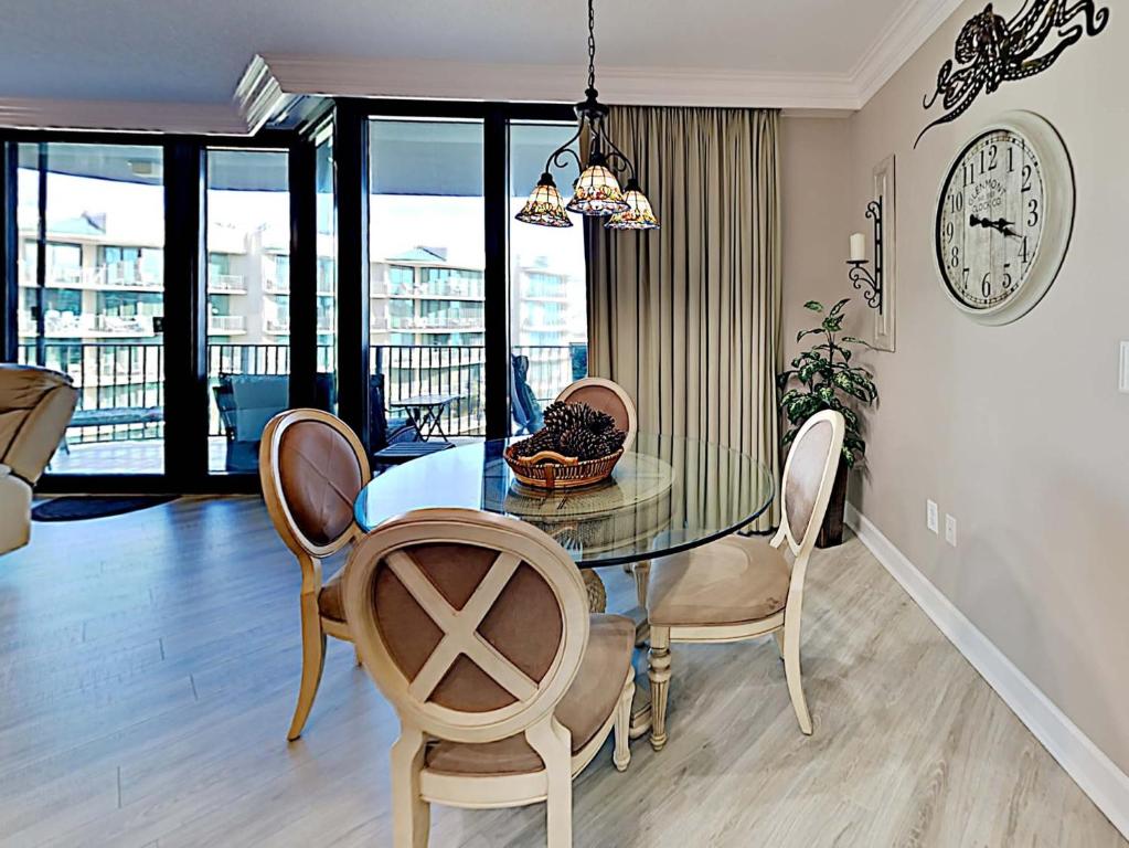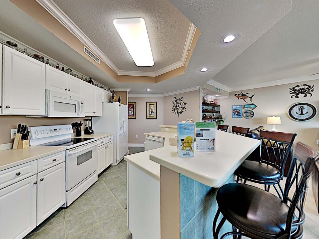 Living space in these condos that can sleep anywhere from six to 10 is accentuated by ten-foot-tall ceilings, floor-to-ceiling windows and all the comforts of home. The living rooms are large enough for big families but cozy enough to make everyone comfortable after a day at the beach. Master baths are roomy and feature soaking tubs as well as separate showers. In the gourmet kitchens, you will find upscale granite countertops and shiny stainless steel appliances. Wet bars extend countertop space.