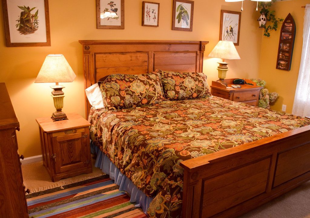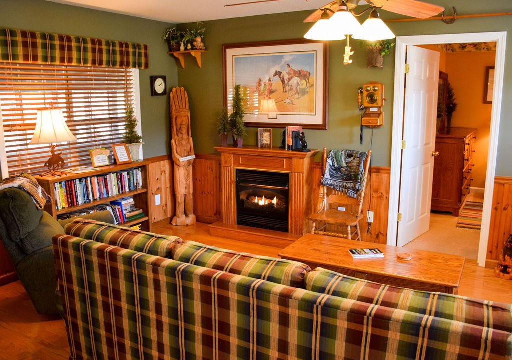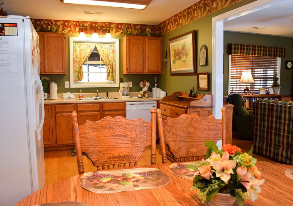 The home’s decor is warm and cheerful throughout. Step past the rockers on the covered front porch, and immediately kick your feet up in the living room with gas fireplace, cable TV/DVD, and free high speed wireless net access.