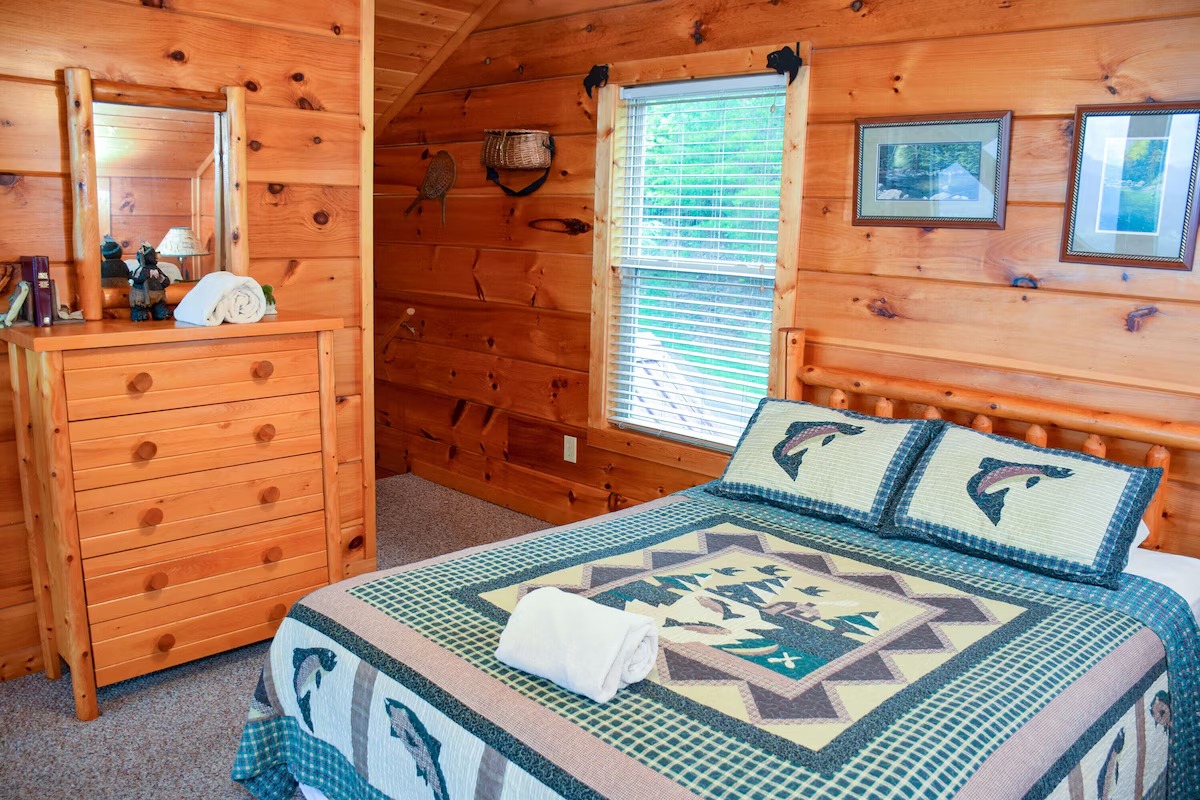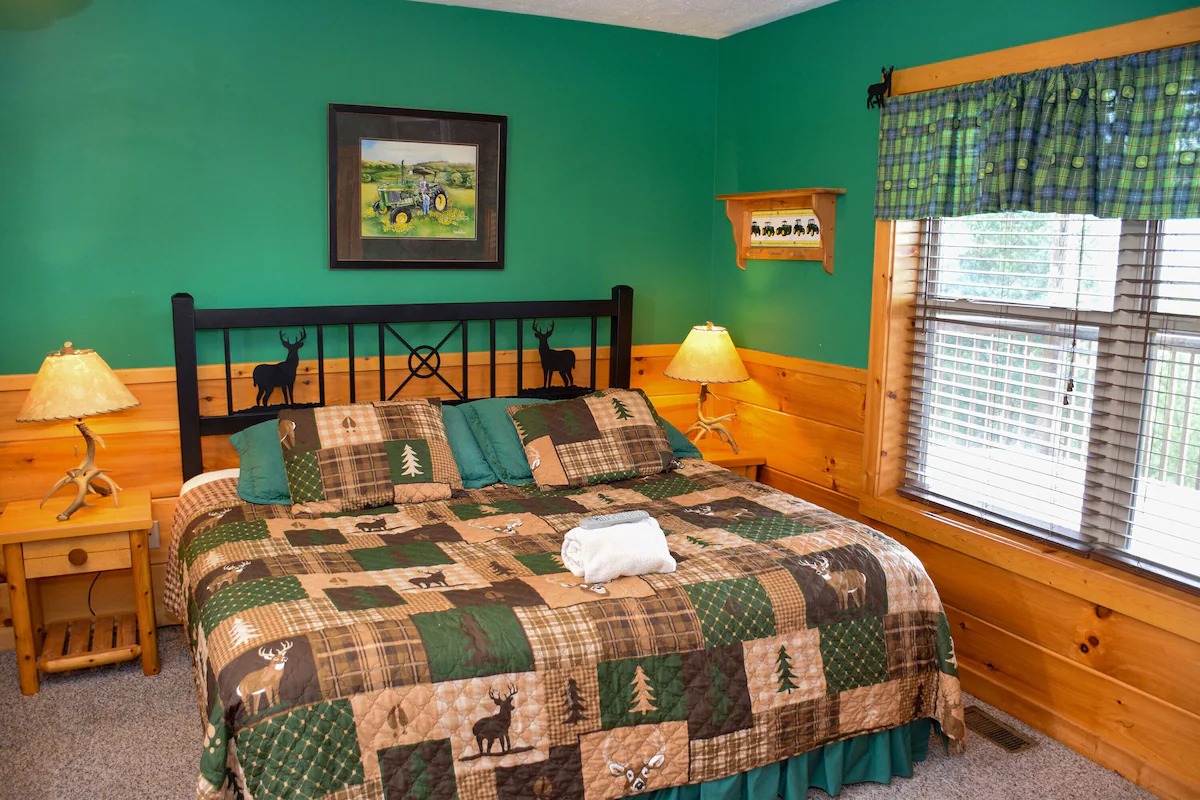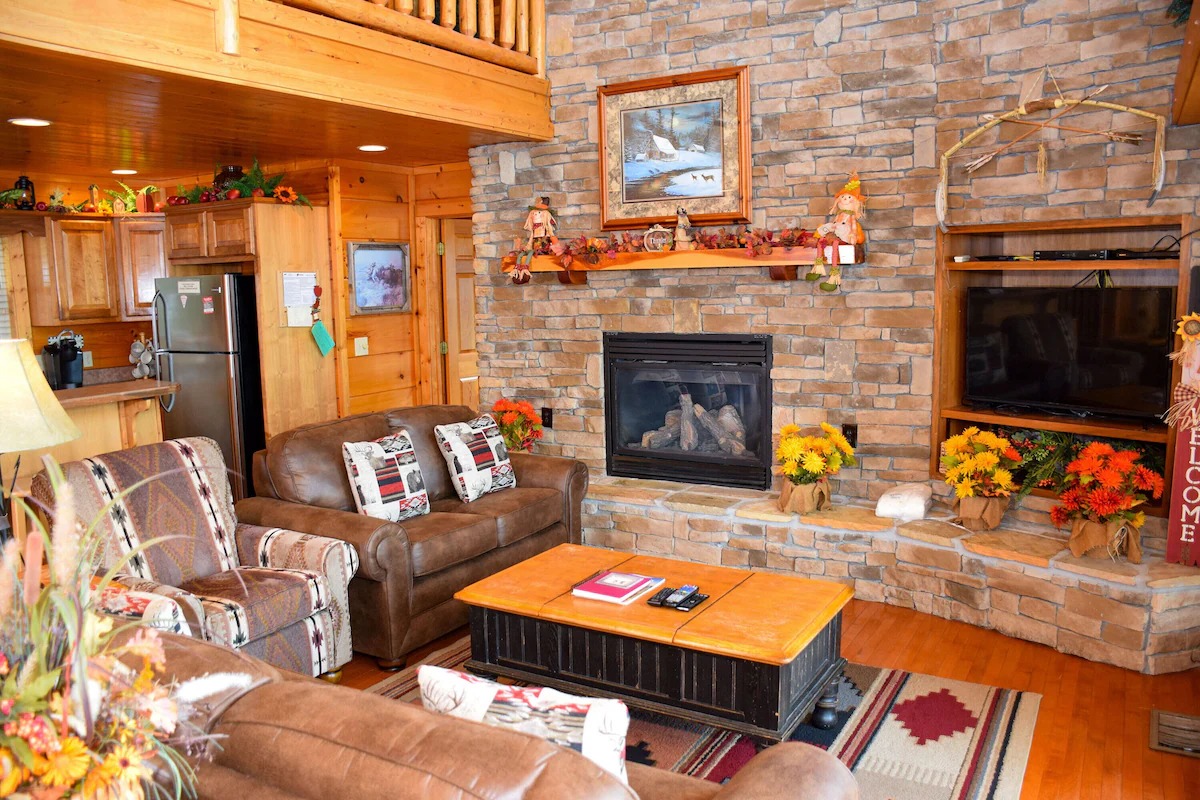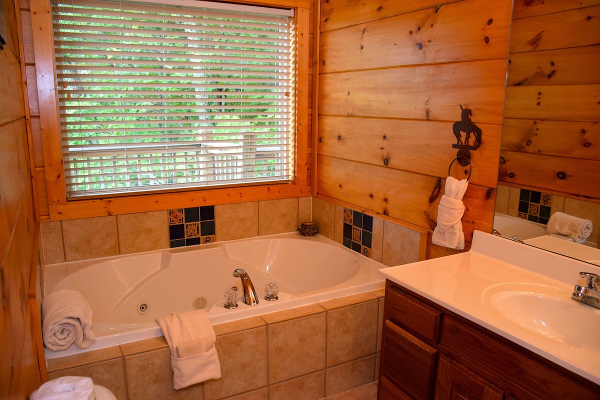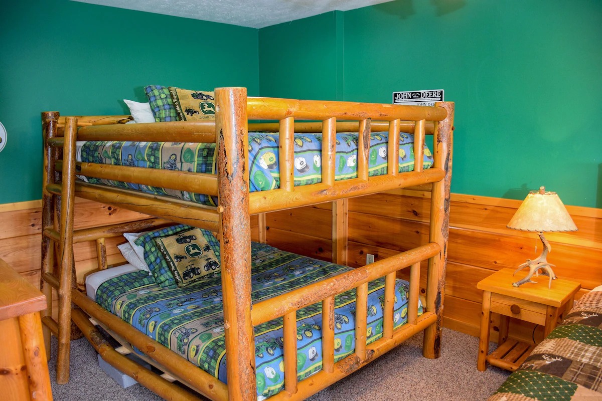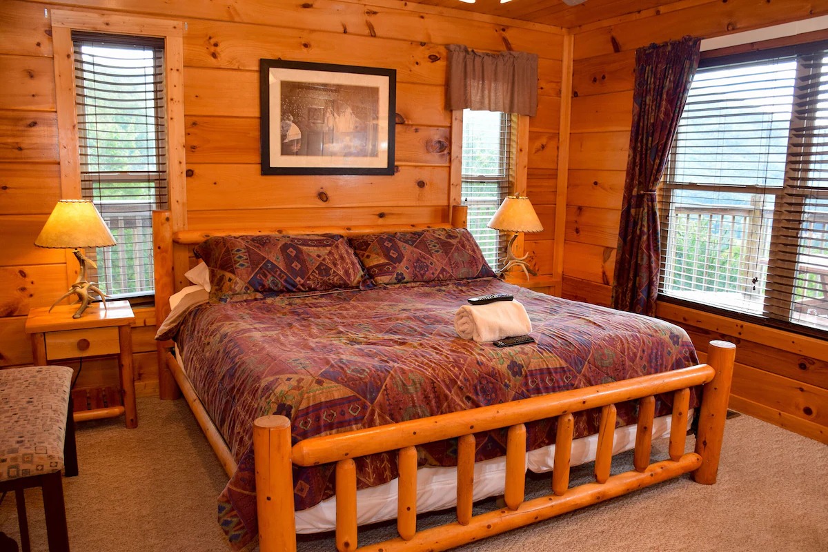 The 5 bedrooms throughout have a variety of decor and sleeping styles to select from, some with Aspen log beds, 2 with picture window Jacuzzis, and all with private baths. Choose which one best accommodates your clan of the tribe.