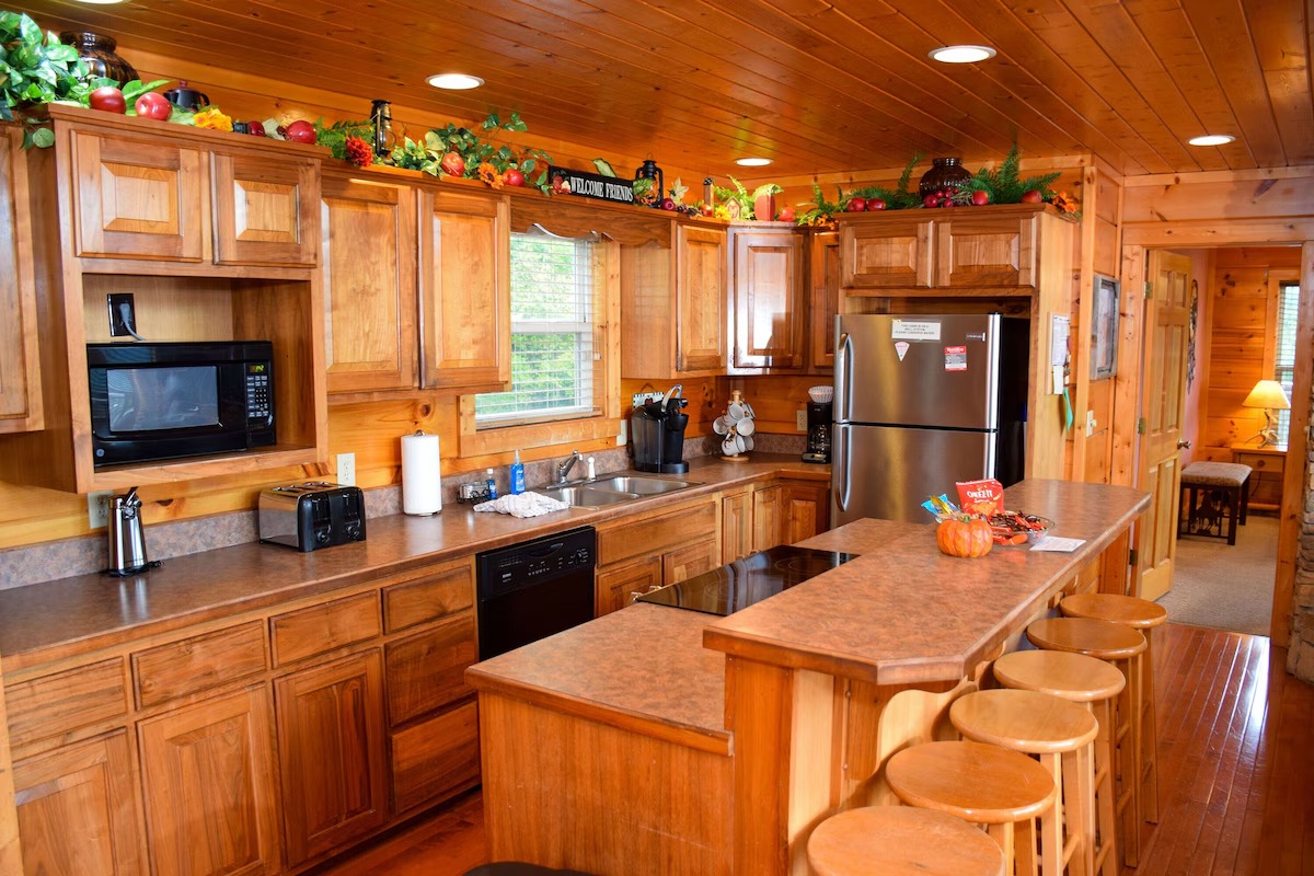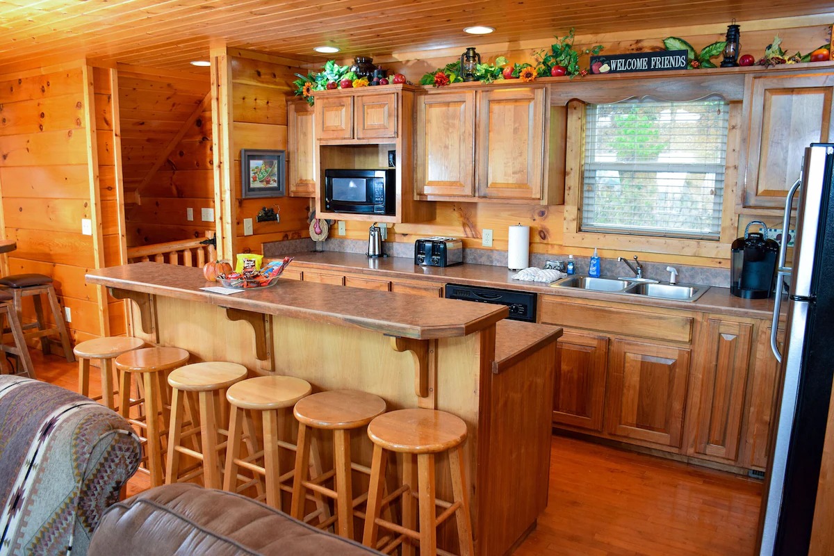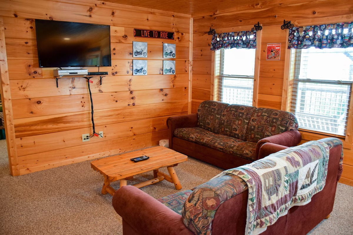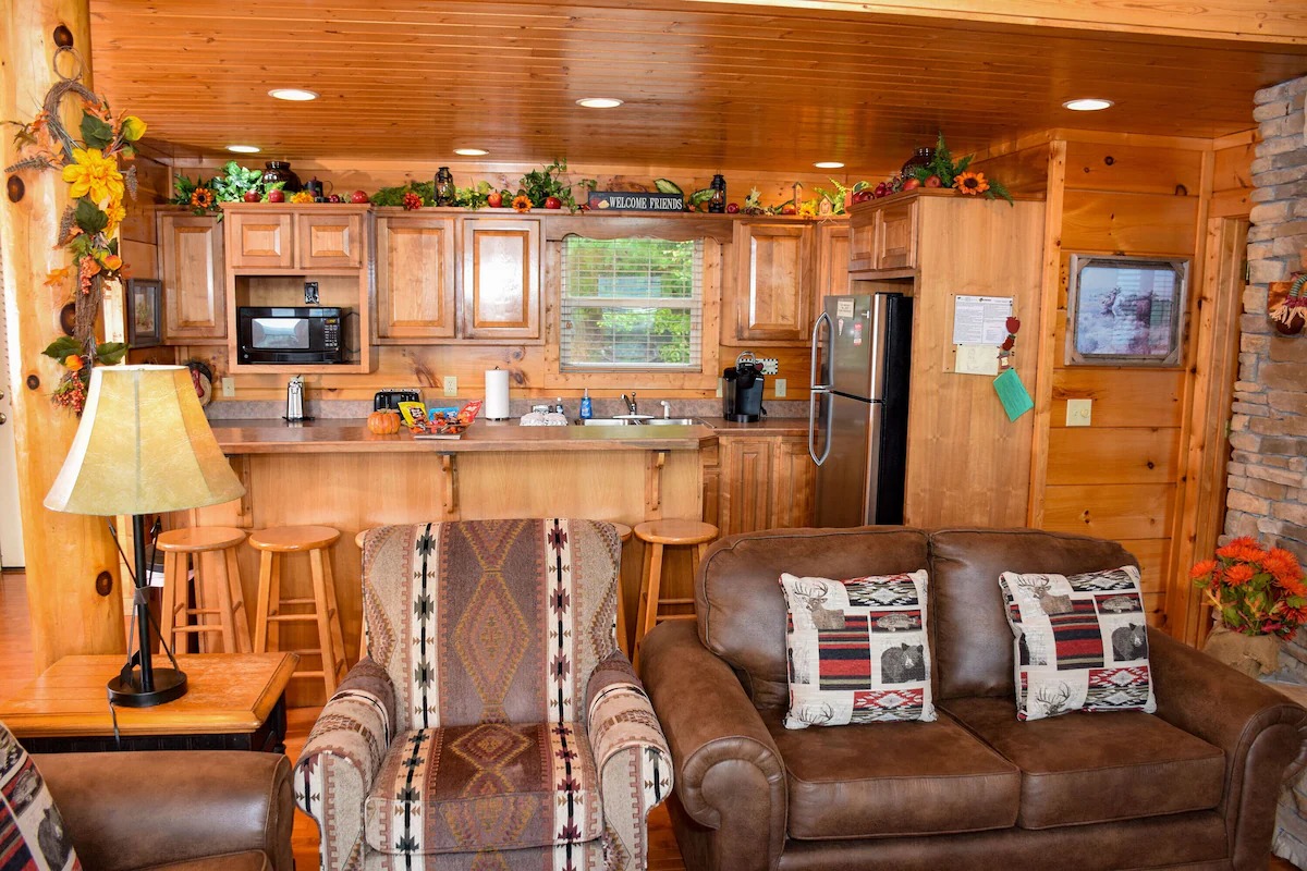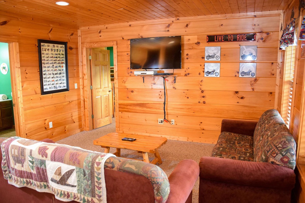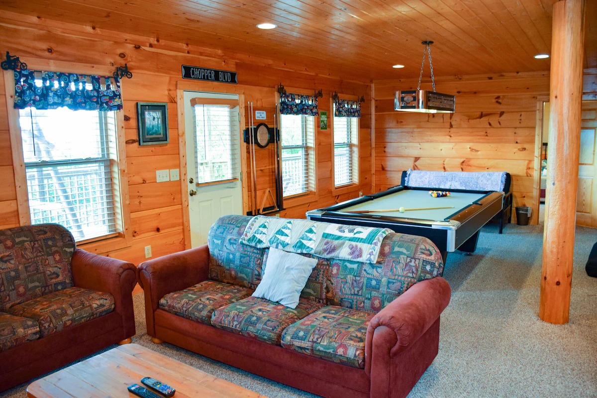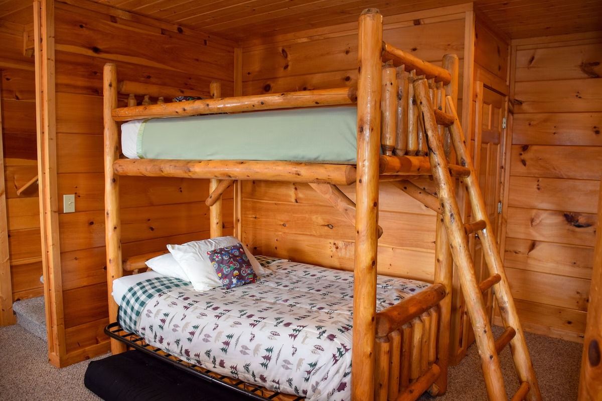 The 5 bedrooms throughout have a variety of decor and sleeping styles to select from, some with Aspen log beds, 2 with picture window Jacuzzis, and all with private baths. Choose which one best accommodates your clan of the tribe.