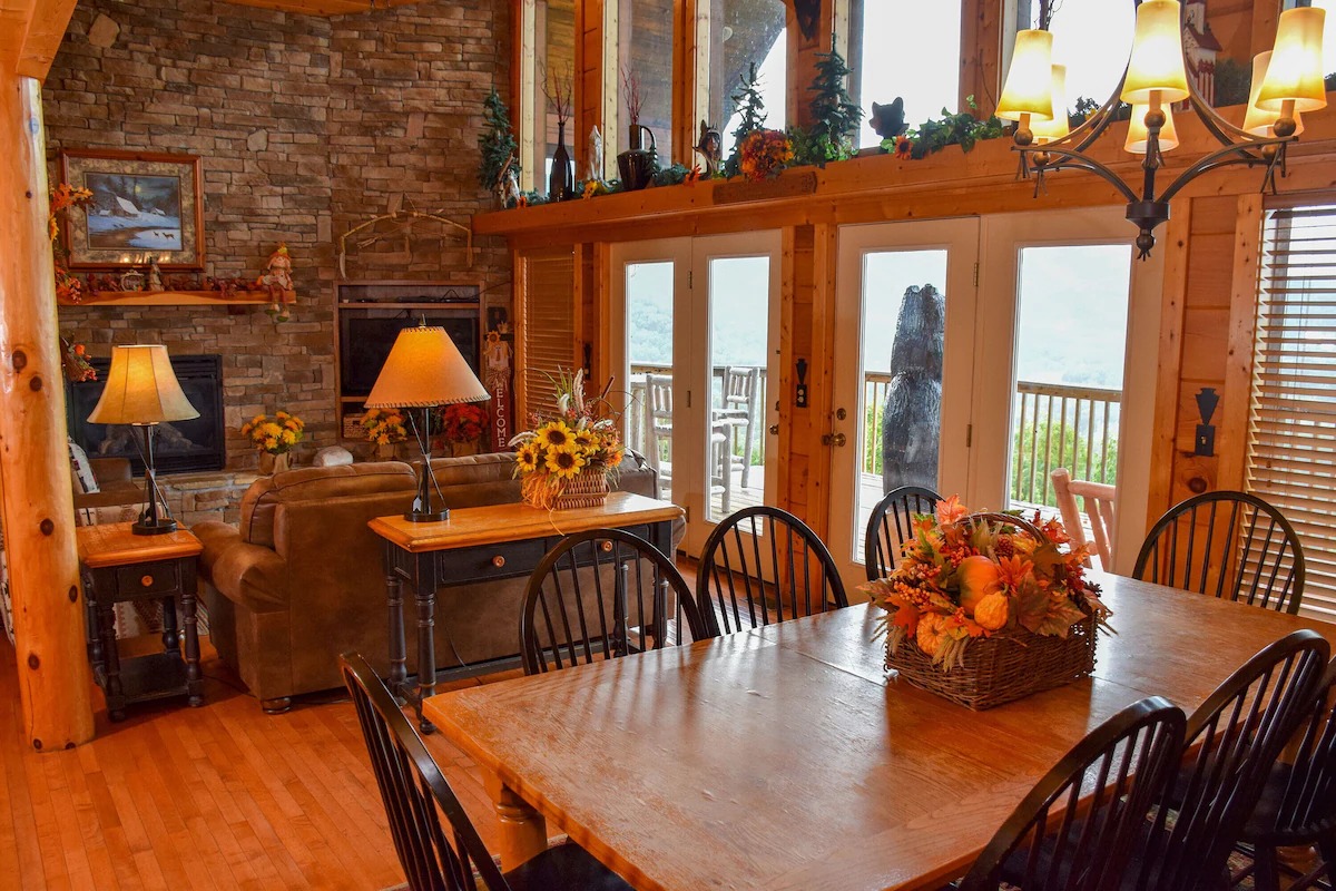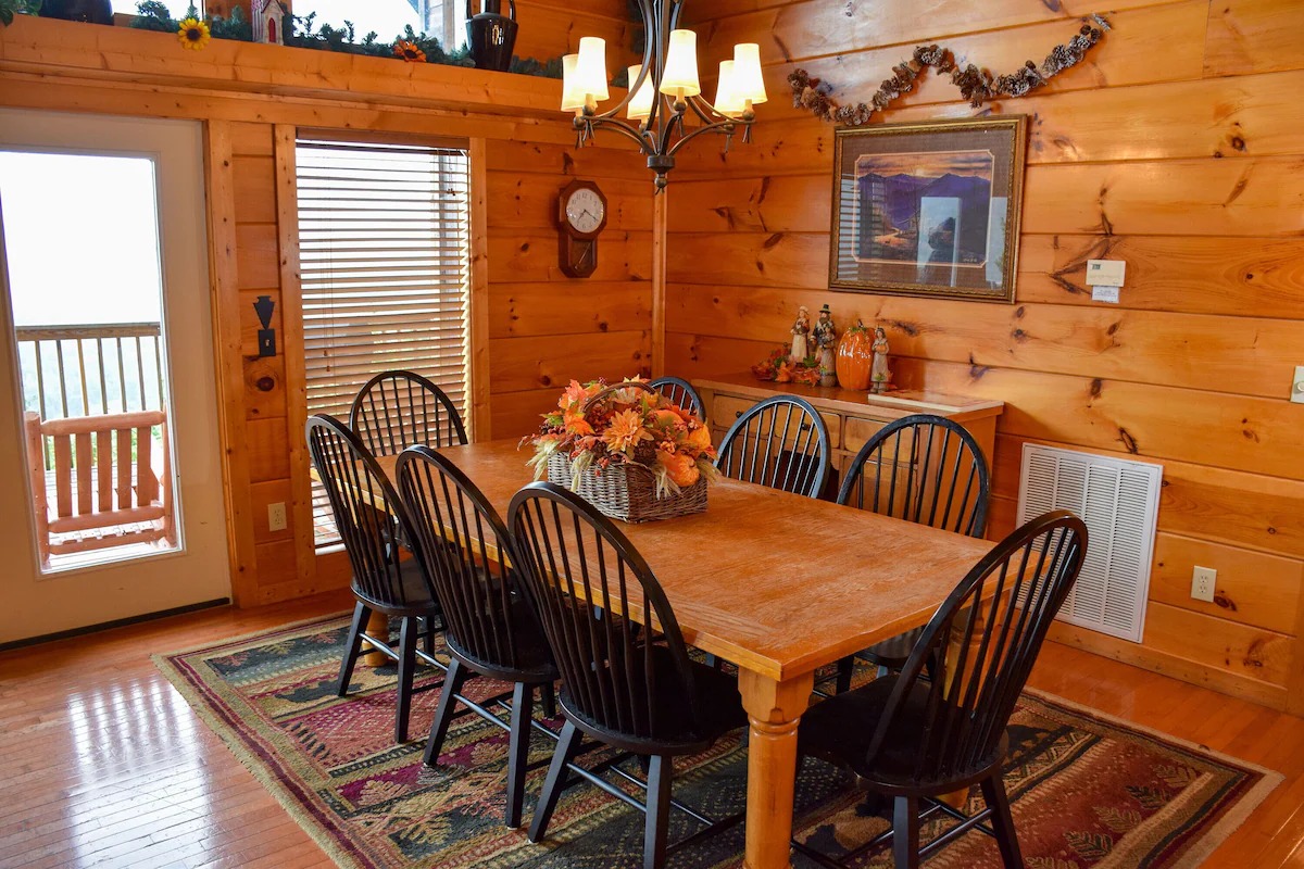 Families of all types, but especially those with children, will thoroughly enjoy Arrowhead, a 5 bedroom/5 bathroom lodge located in the Dogwood Farms community. Its hillside venue affords expansive and spectacular views at both daytime and night. Watch the cloud shadows play into the hollows of the foothills, and then marvel at the hues of the sunset into night. It’s easy to lose track of just how long you have been sitting in peace, without regard for the workday world you left behind.