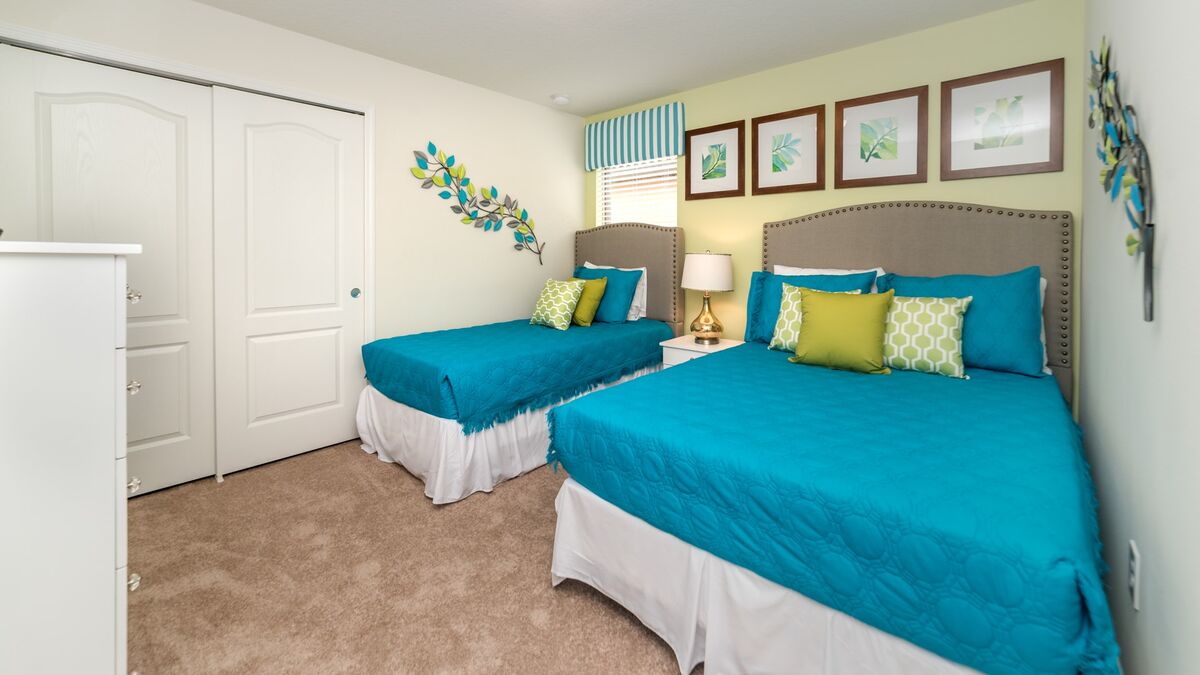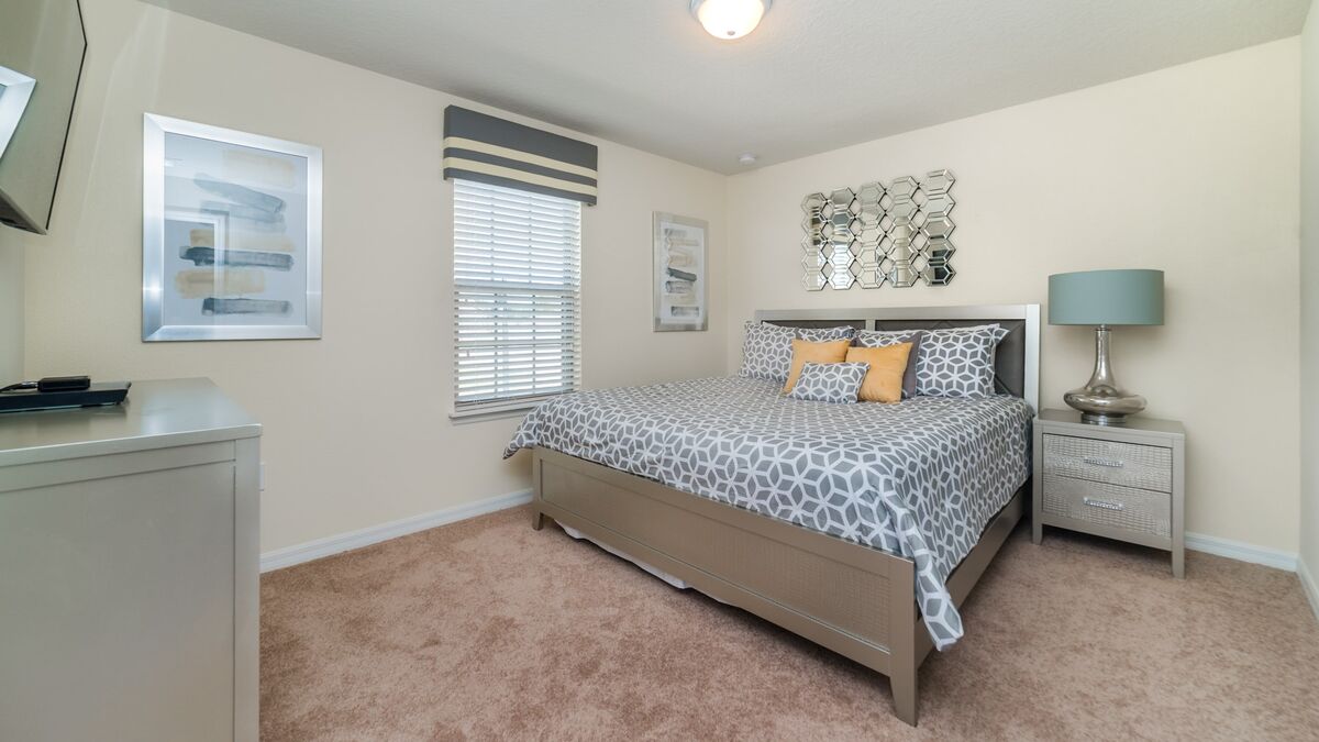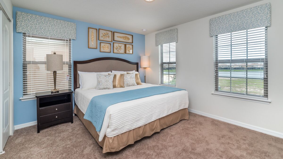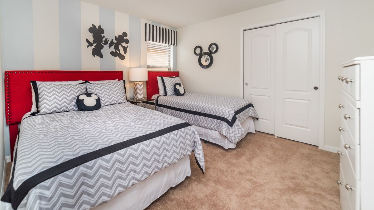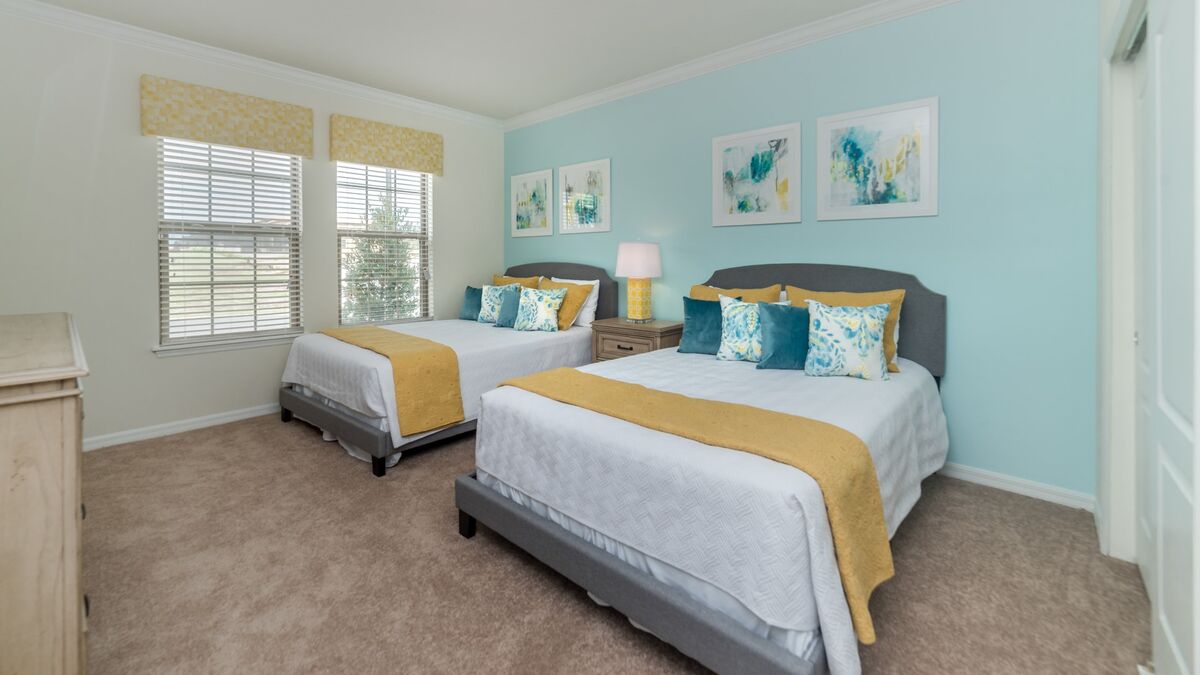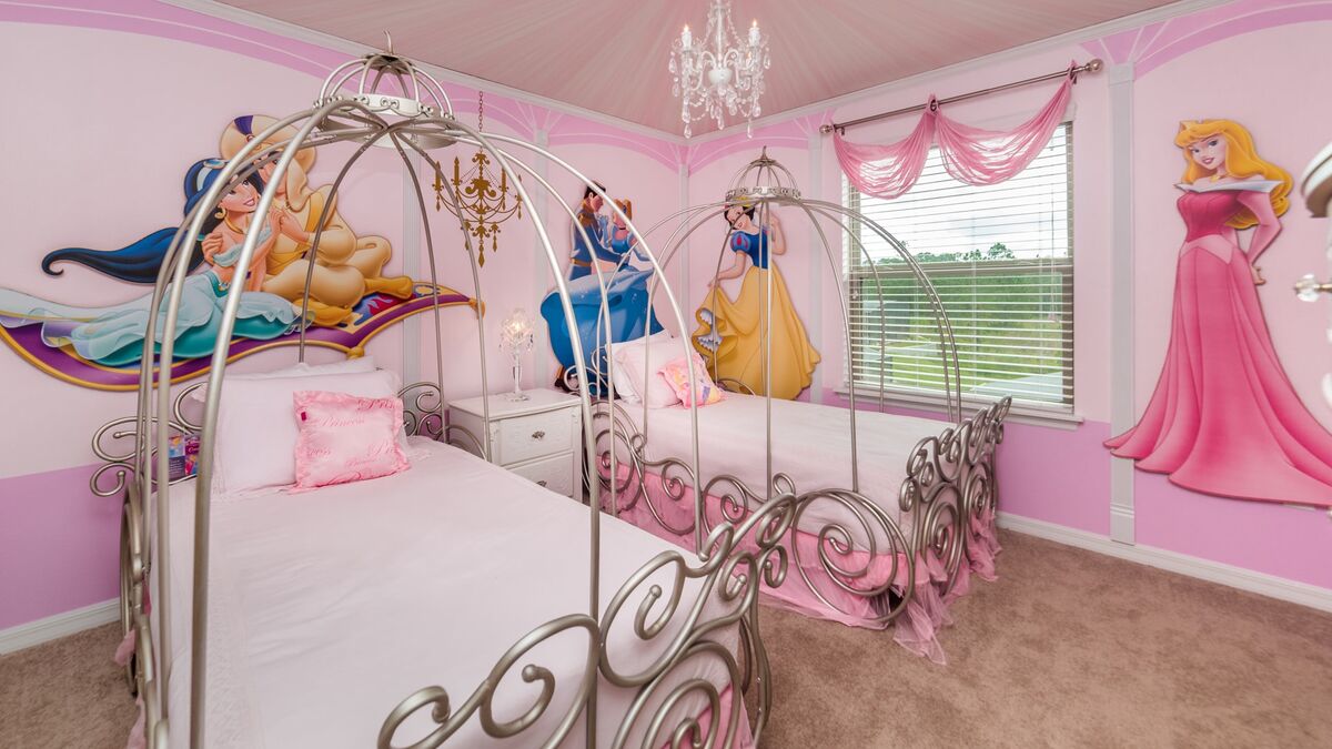 Welcome to this spacious vacation home located in the resort community of Windsor at Westside. Sleeping a total of 22 guests, this home is conformed of 9 bedrooms and 6 bathrooms. The 9 bedrooms consist of 4 bedrooms with a king bed in each, 1 bedroom with 2 queen beds and 2 bedrooms with 2 twin beds. Also, there are 2 bedrooms with a twin bed and a full bed. 3 of the bedrooms are theme-decorated differently for the little ones of the house.