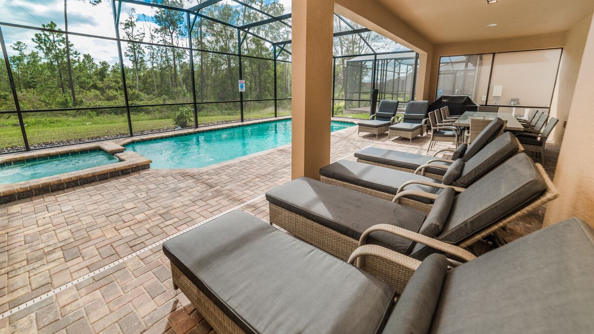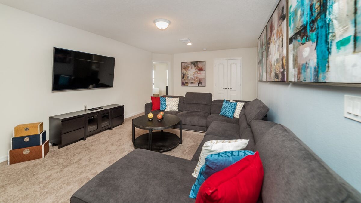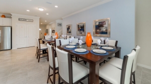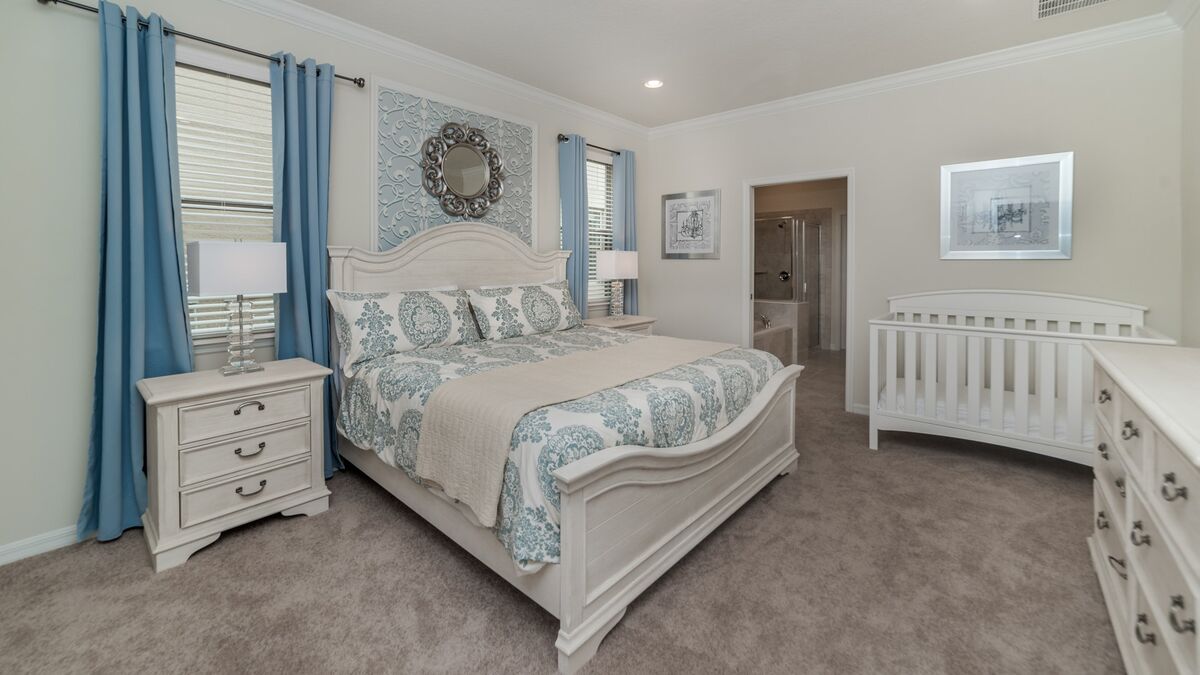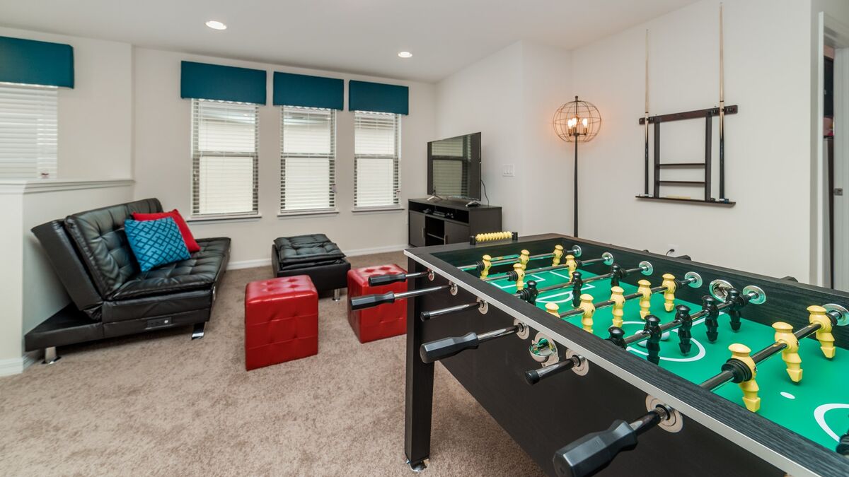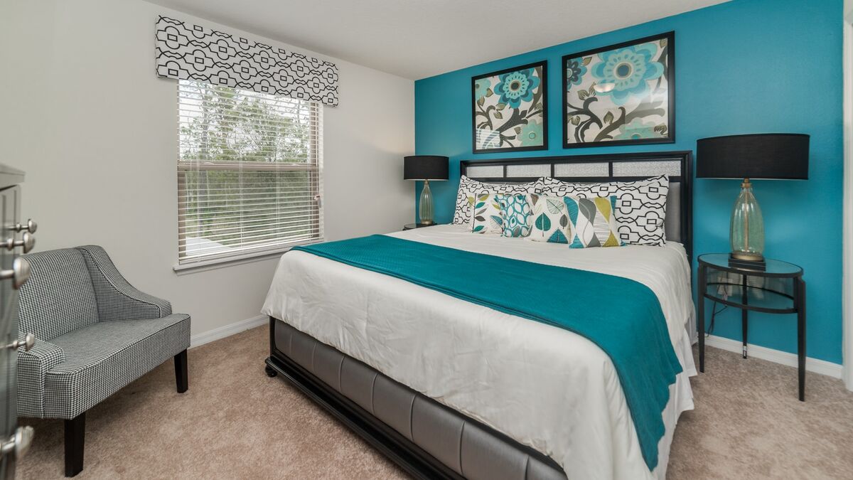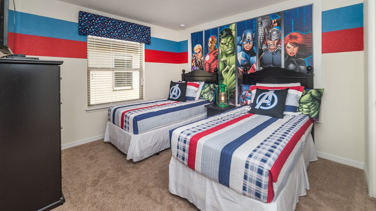 Welcome to this spacious vacation home located in the resort community of Windsor at Westside. Sleeping a total of 22 guests, this home is conformed of 9 bedrooms and 6 bathrooms. The 9 bedrooms consist of 4 bedrooms with a king bed in each, 1 bedroom with 2 queen beds and 2 bedrooms with 2 twin beds. Also, there are 2 bedrooms with a twin bed and a full bed. 3 of the bedrooms are theme-decorated differently for the little ones of the house.